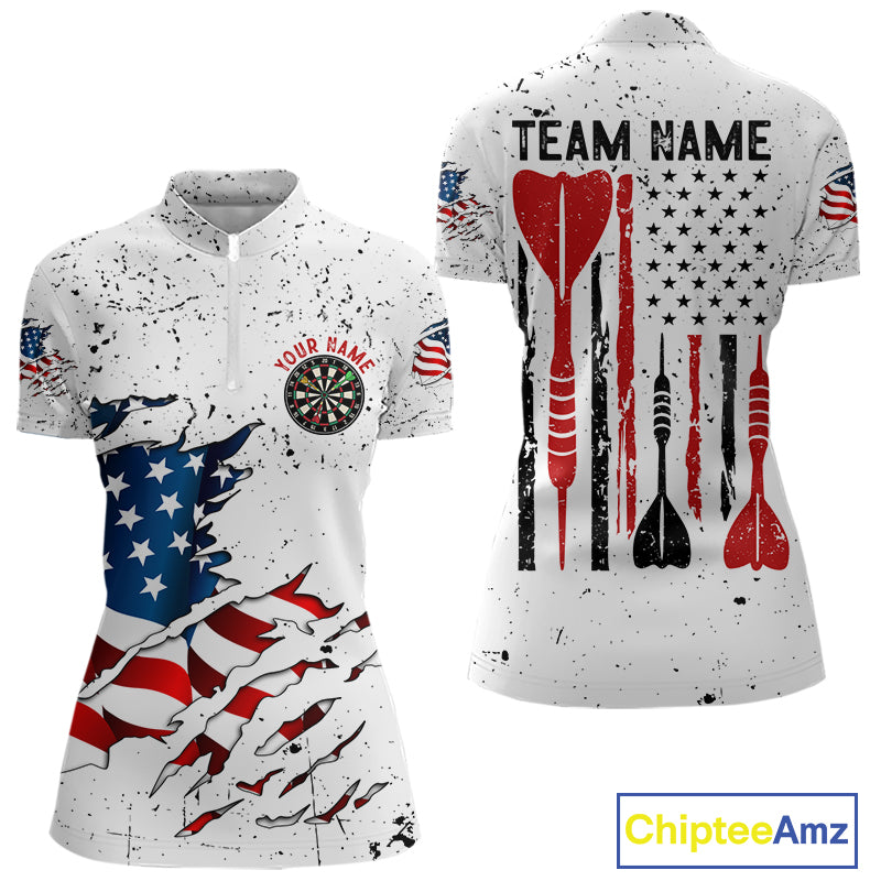 Personalized White Grunge American Flag Darts Jersey For Women Custom Patriotic Darts Team Shirts TDM5076