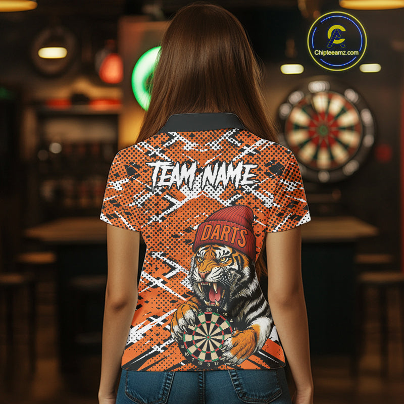 Personalized Orange Black Grunge Tiger Darts Shirt For Women Custom Darts Team Jersey Polo & 1/4 Zip TDM5099