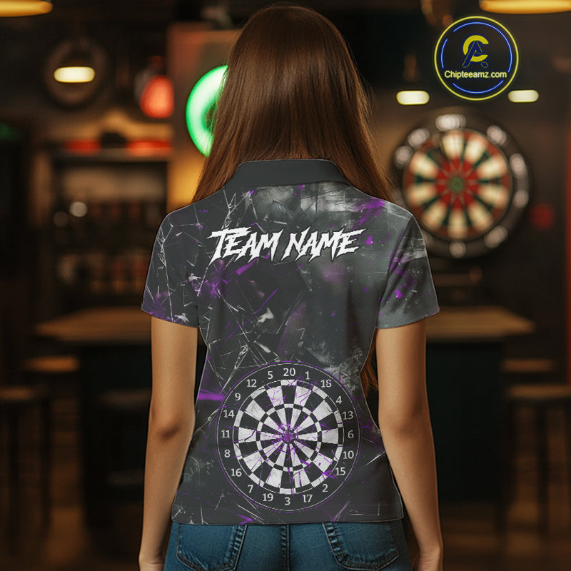 Personalized Purple Break Glass Darts Shirt For Women Custom Darts Team Jersey Polo & 1/4 Zip TDM5101