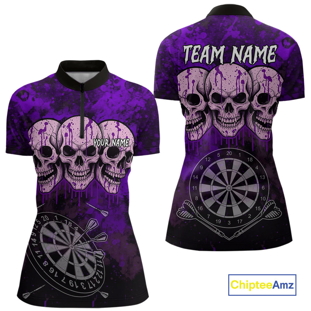 Black And Purple Grunge Skull Womens Dart Shirts Custom Dart Jerseys Team Polo & Quarter Zip TDM5128
