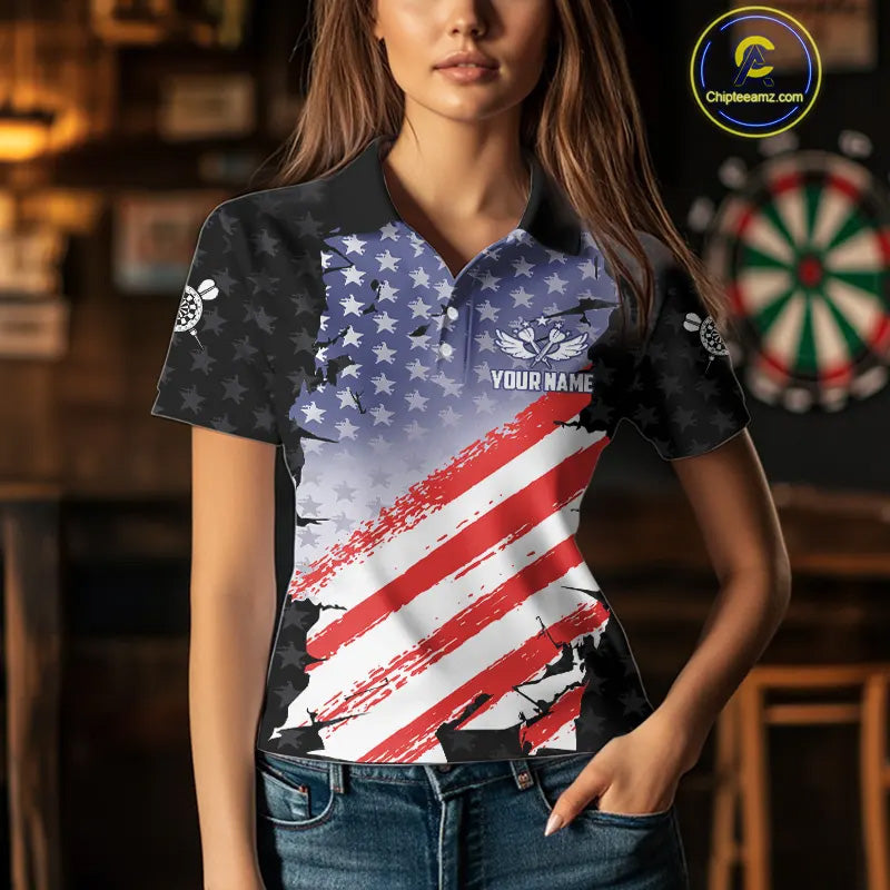 Personalized American Flag Eagle Darts Shirt For Women Custom Patriotic Darts Team Jersey Team TDM5149