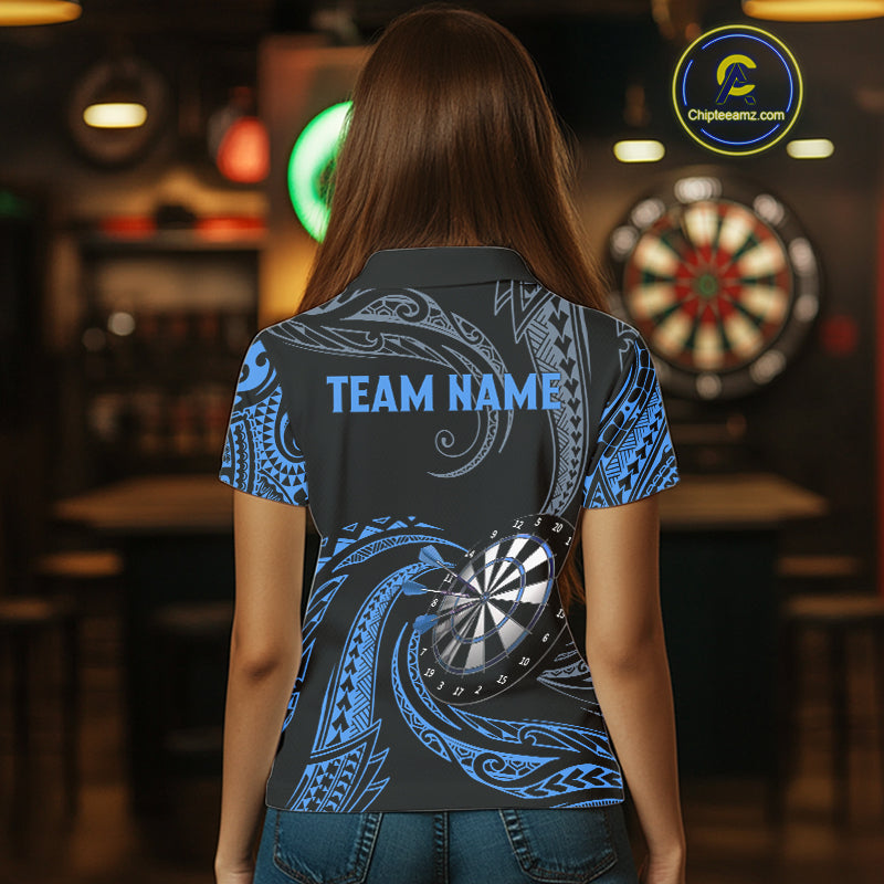 Personalized Blue Tribal Polynesian Womens Dart Shirts Custom Darts Polo & 1/4 Zip Team Jersey TDM5154