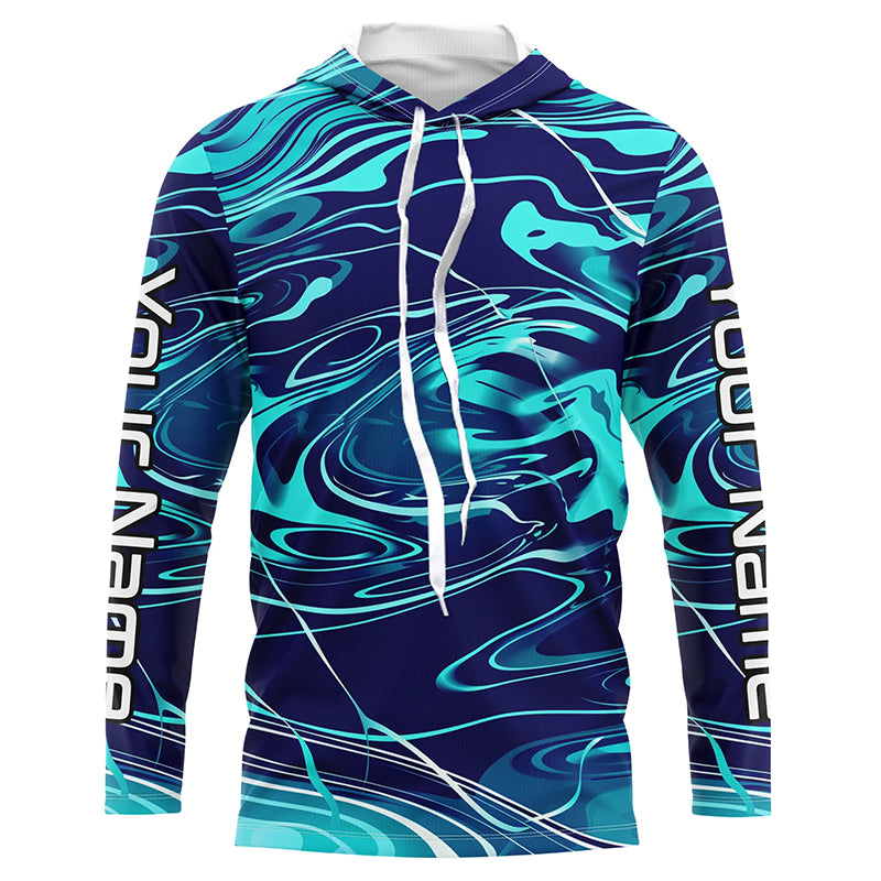 Custom Saltwater Long Sleeve Fishing Shirts Uv Protection, Sea Wave Camo Fishing Shirts IPHW5868