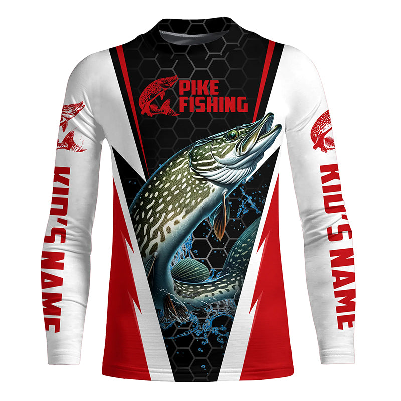 Custom Northern Pike Fishing Jerseys, Pike Long Sleeve Performance Fishing Shirts | Red IPHW6069