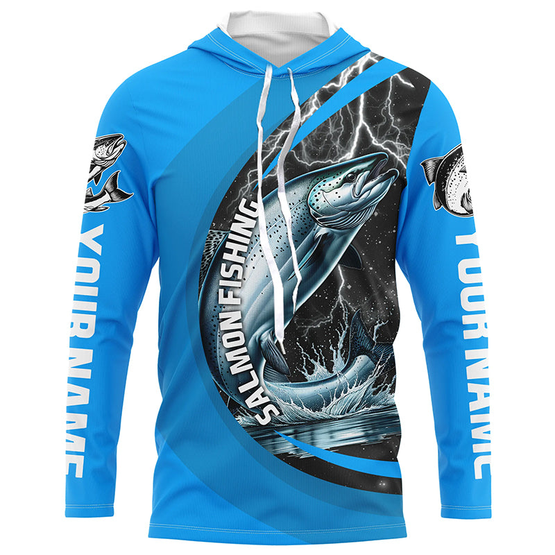 Custom Chinook Salmon Fishing Jerseys, King Salmon Fishing Long Sleeve Performance Shirt |Water Blue IPHW6423
