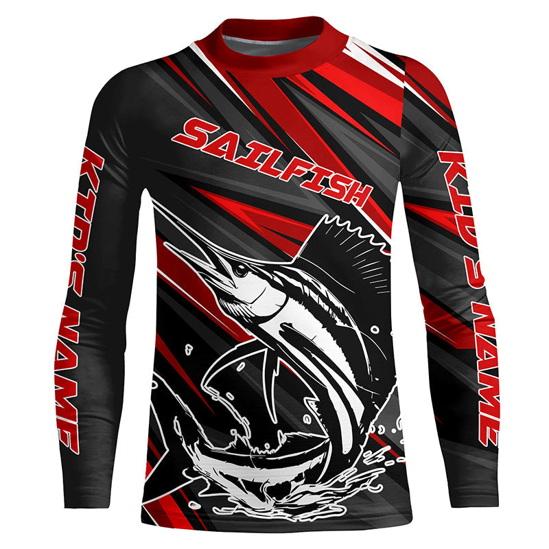 Black And Red Sailfish Fishing Jerseys, Custom Sailfish Long Sleeve Performance Fishing Shirts IPHW6899