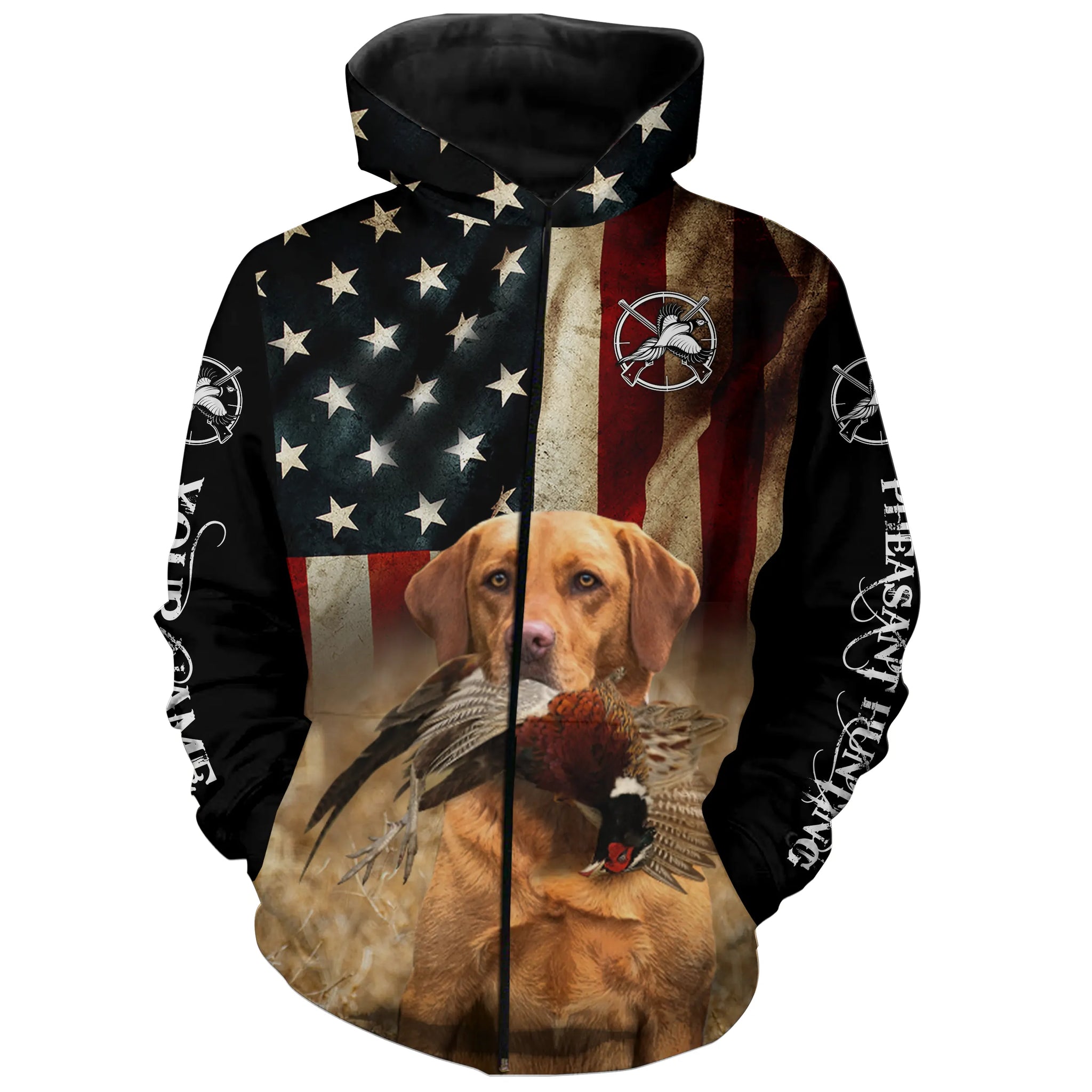 Bird dog Labs Fox red Labrador Retriever Pheasant Hunting American flag 3D all over print Shirts FSD3875