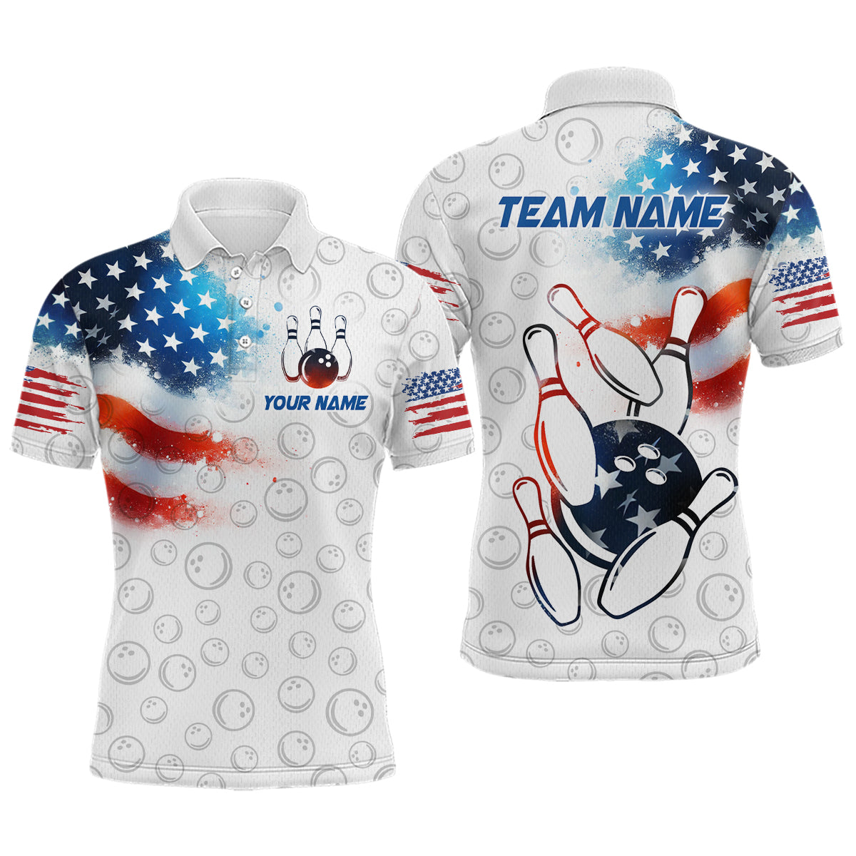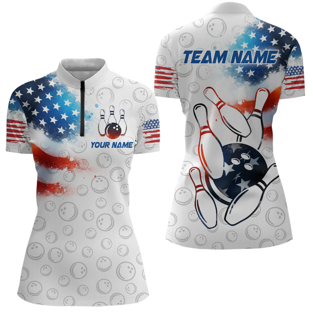 American Bowling Shirt Patriotic Bowling Shirts for Men Women Bowling Polo 1/4 Zip Shirt MBL26