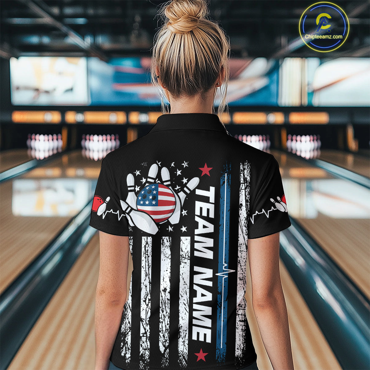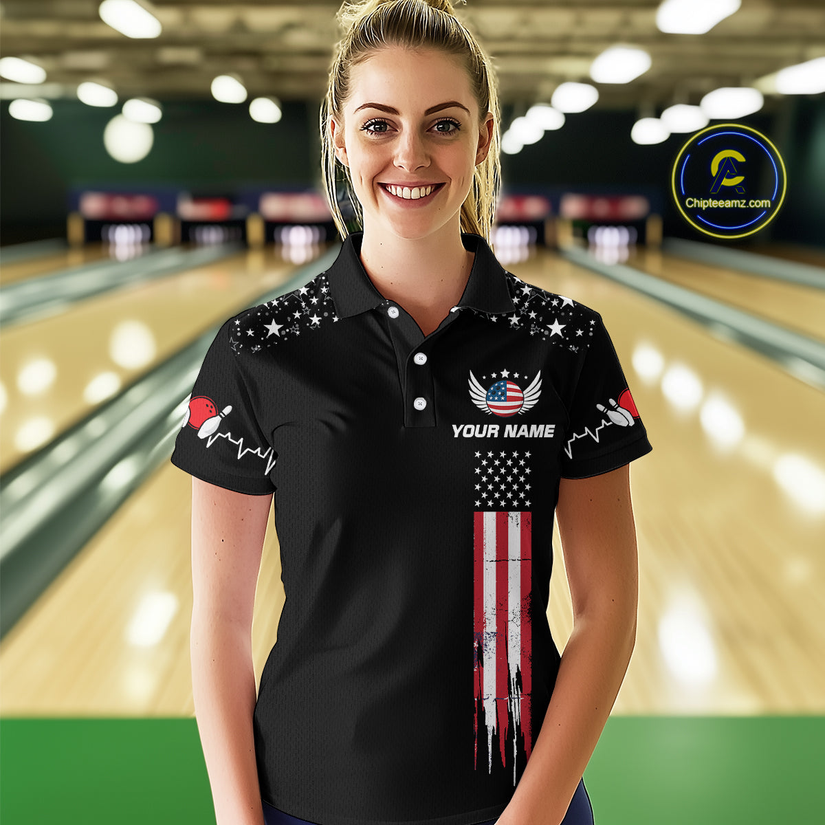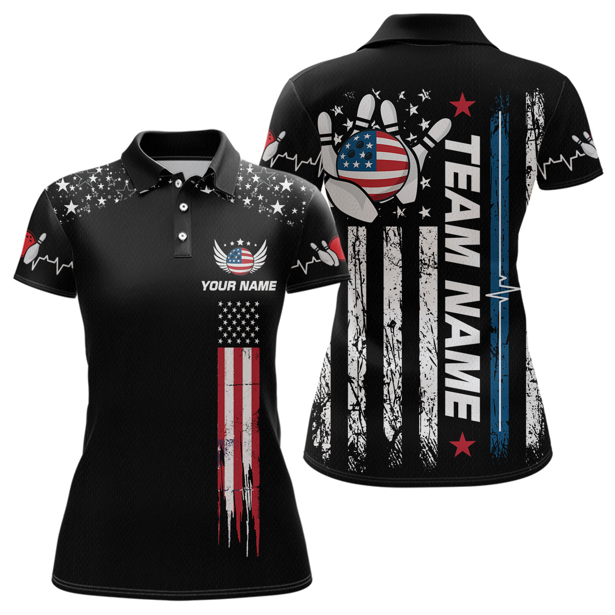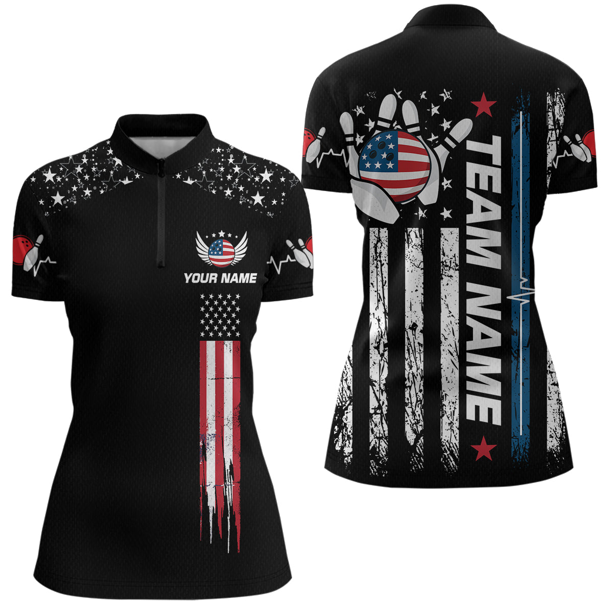 American Flag Bowling Custom Women Bowling Shirt Polo & Quarter-Zip Bowling Team Jerseys HNT54