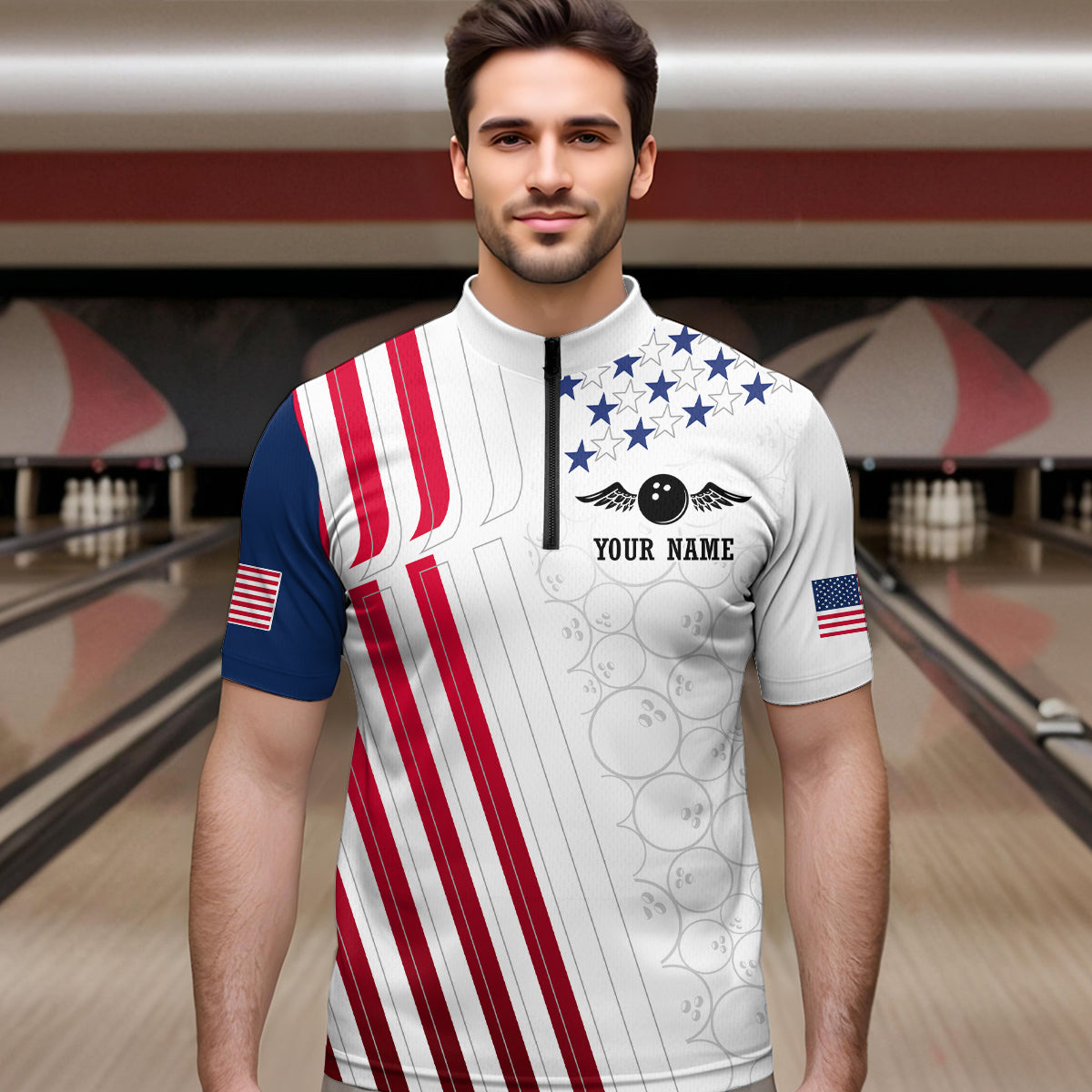 American Flag Bowling Shirts for Men Women Team Bowling Shirt Patriotic Bowling Shirt MBL08