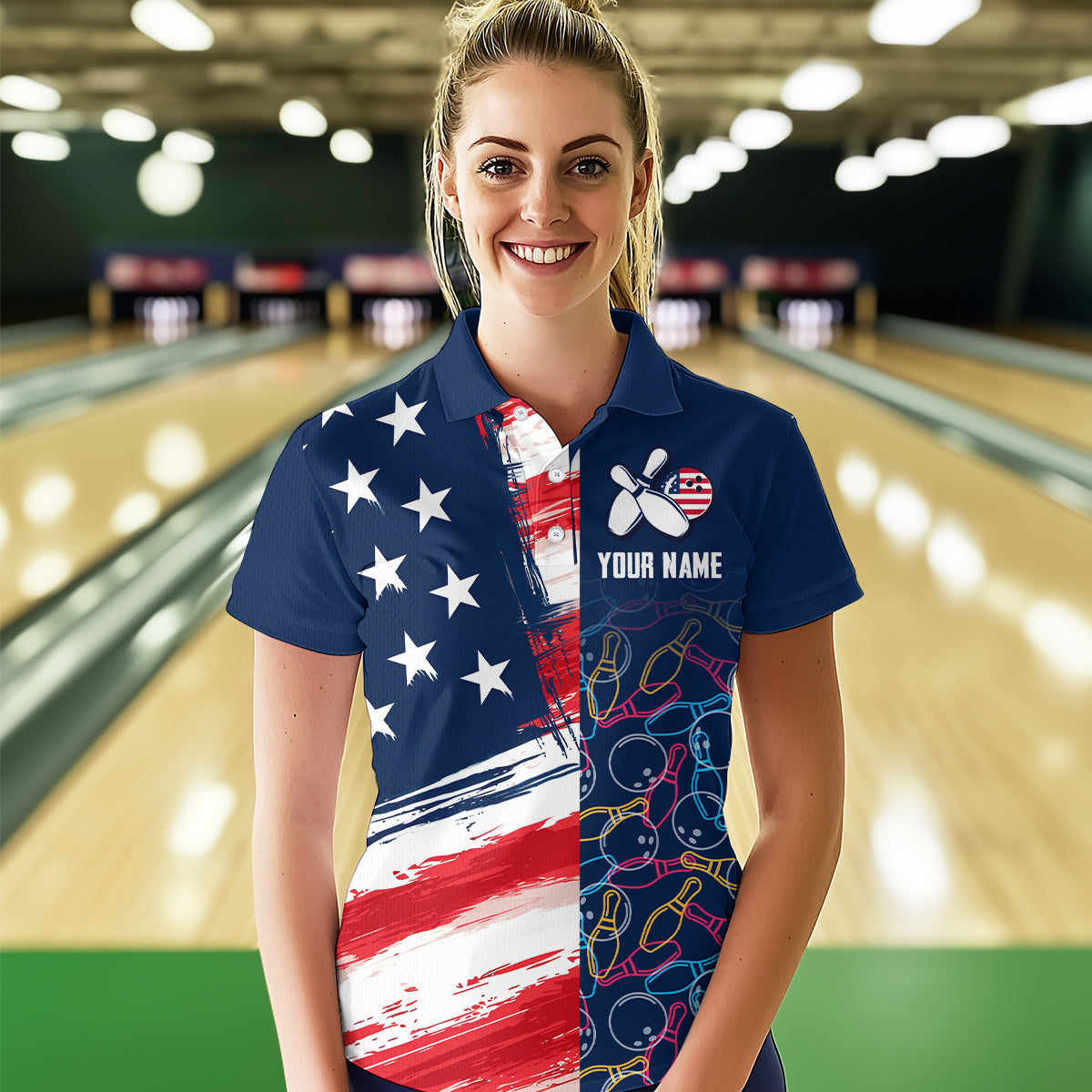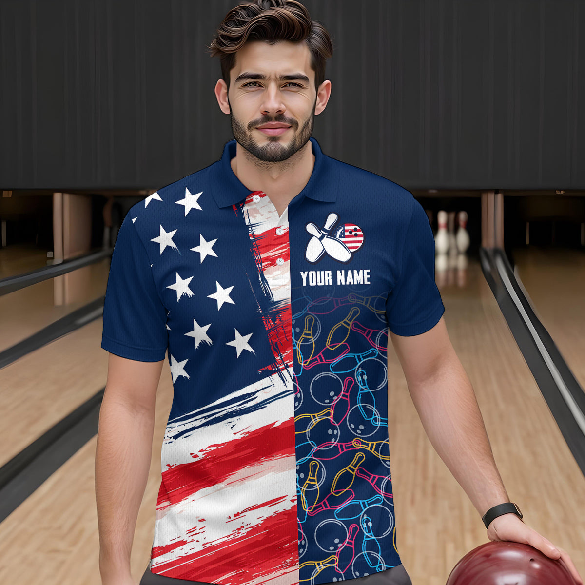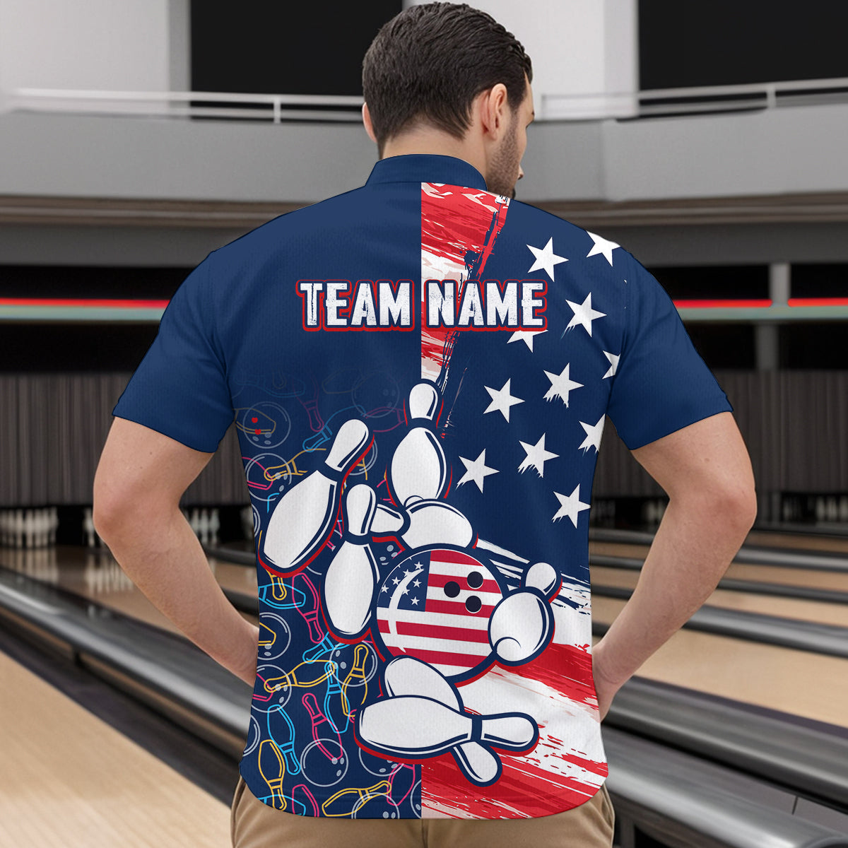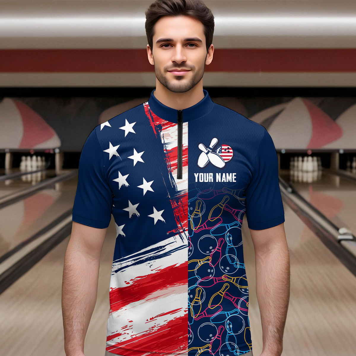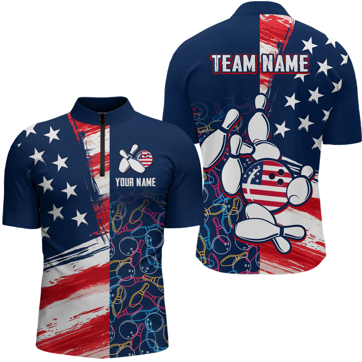 American Flag Bowling Shirts Patriotic Bowling Shirt for Men Women Polo&1/4 Zip Shirt MBL21