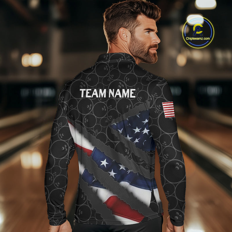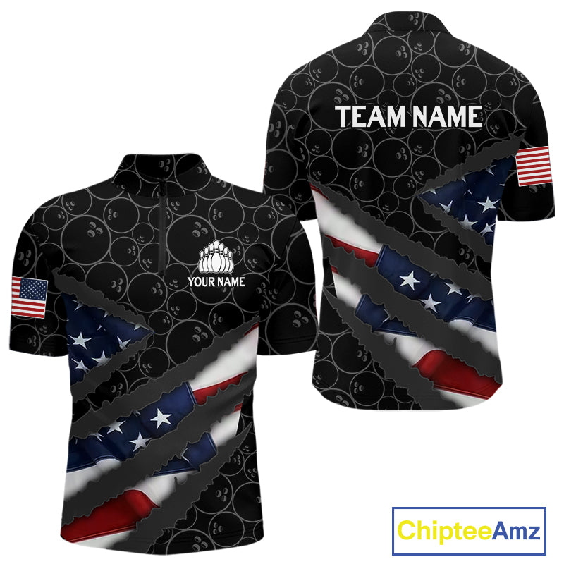American Flag Mens Bowling Shirt Custom Bowling Jersey for Team Patriotic Bowlers Polo, 1/4 zip Shirt NQS10427