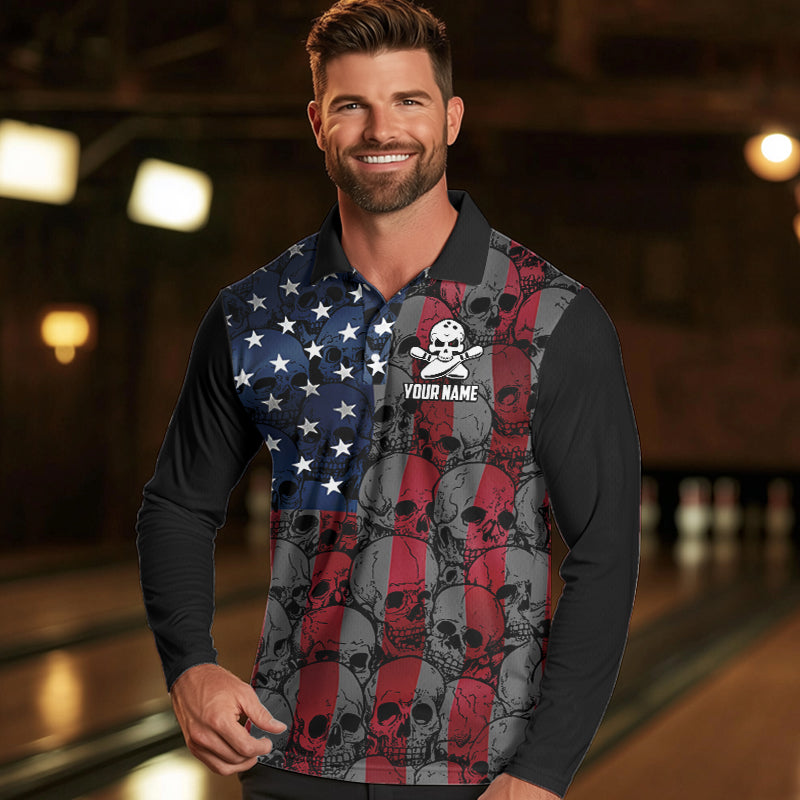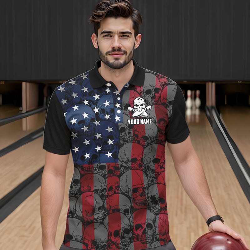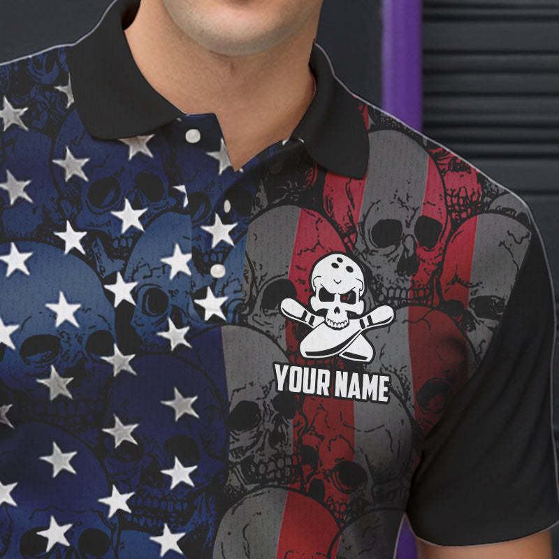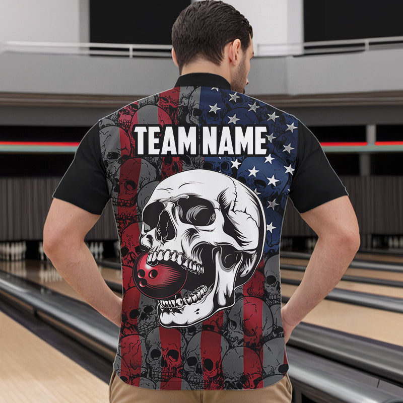 American Flag Skull Camo Bowling Shirt For Men Custom patriotic Team Jersey bowling attire for men NQS9790