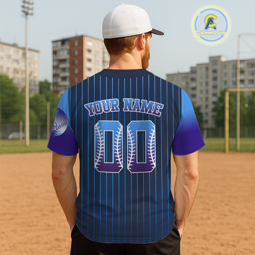 Custom Navy Pinstripe Button Up Baseball Shirt For Men Classic Youth Baseball Jerseys NYN0812