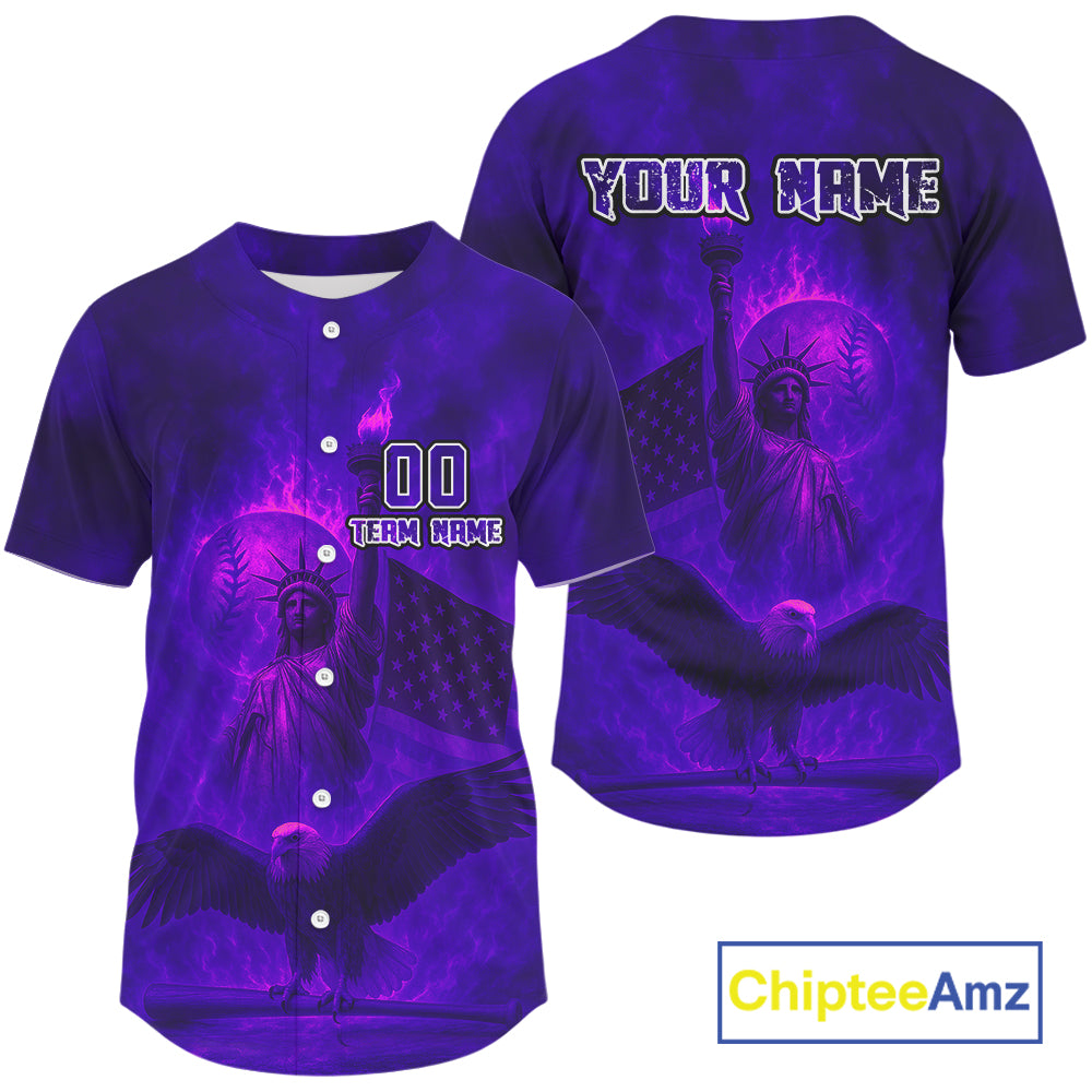 Custom Purple Flames Eagle Patriotic Baseball Jerseys For Men Outfits US Flag Baseball Shirt NYN0921