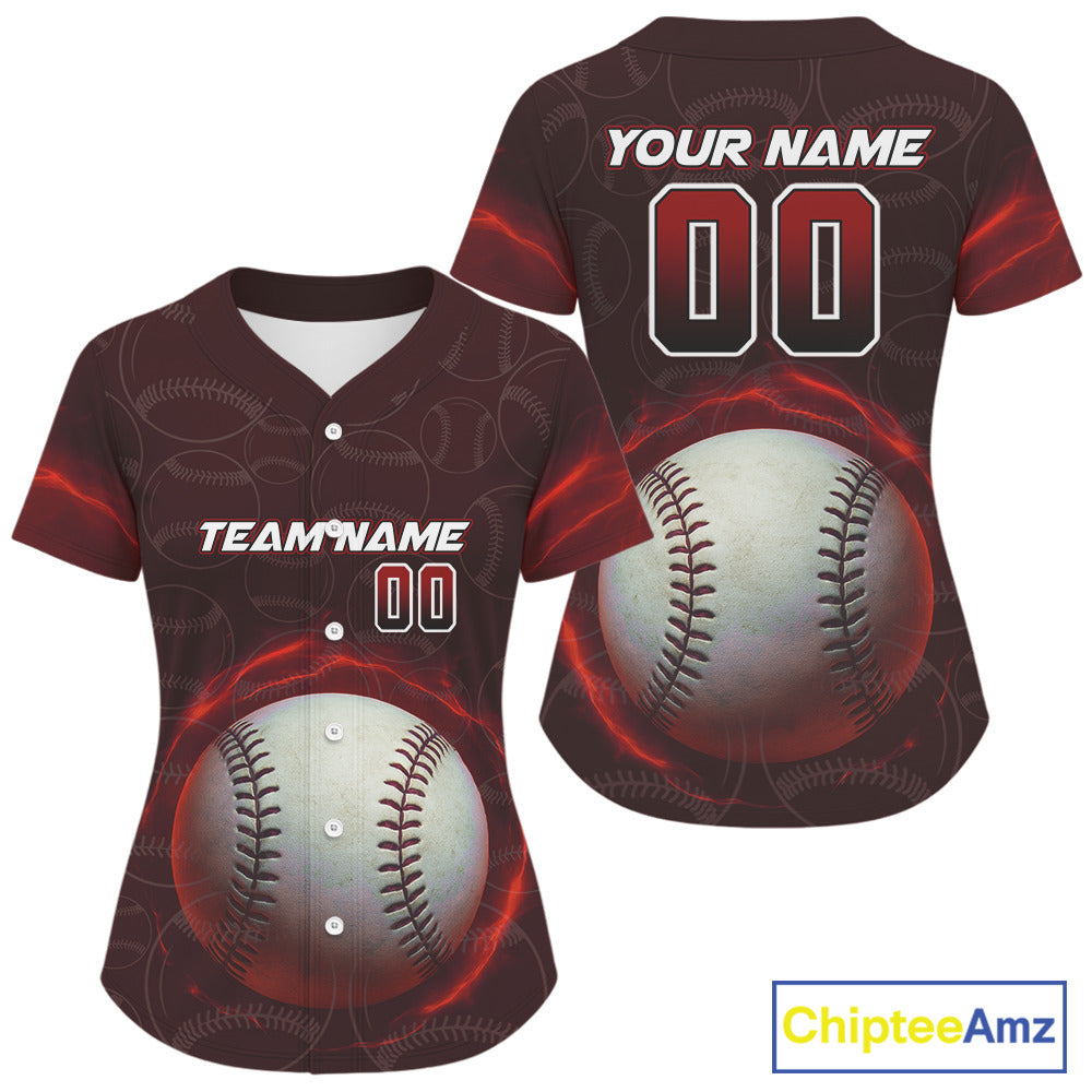 Custom Red - Black Lightning Women Baseball Ball Jersey, Outfits Baseball Jersey For Newborns NYN1077