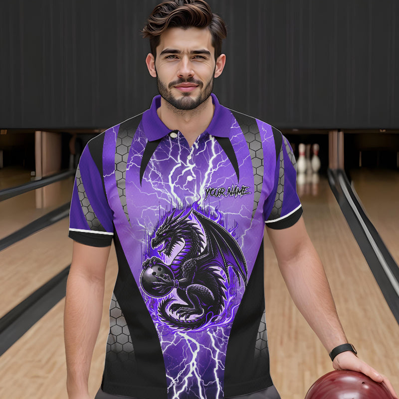 Black and Purple Thunder Lightning Dragon Bowling Team Shirts For Men Custom Bowling Uniform NQS9662
