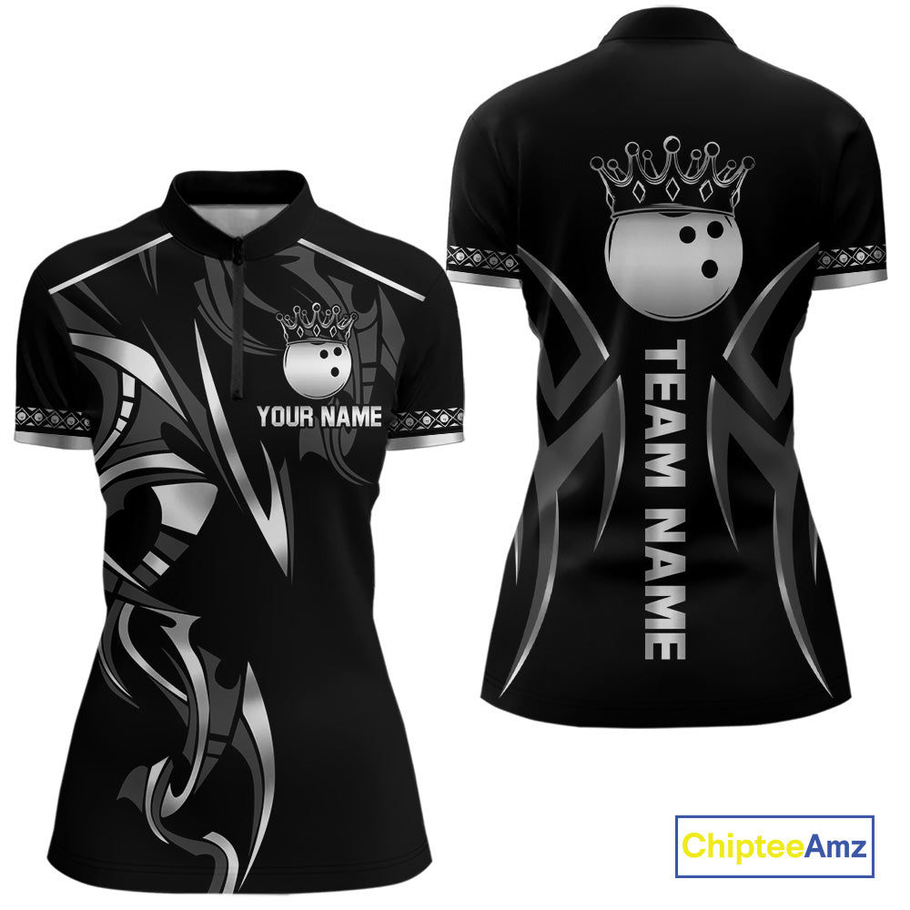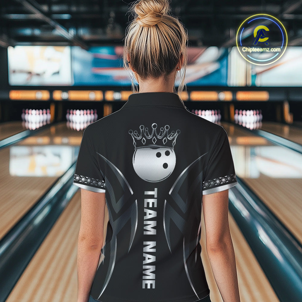 Black and Silver crown Bowling ball Polo, Quarter Zip Shirts for Women Custom Bowling Team jerseys NQS10537