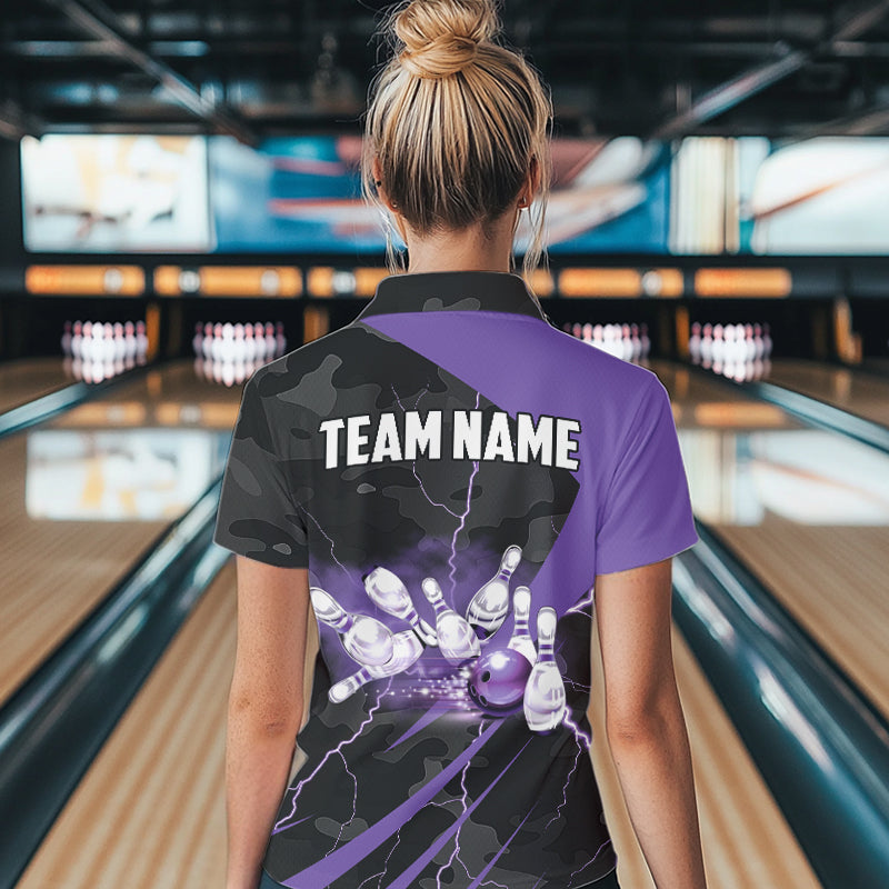 Black Camo Purple Lightning Thunder Bowling Shirts For Women Custom Bowling Team League Jerseys NQS9689