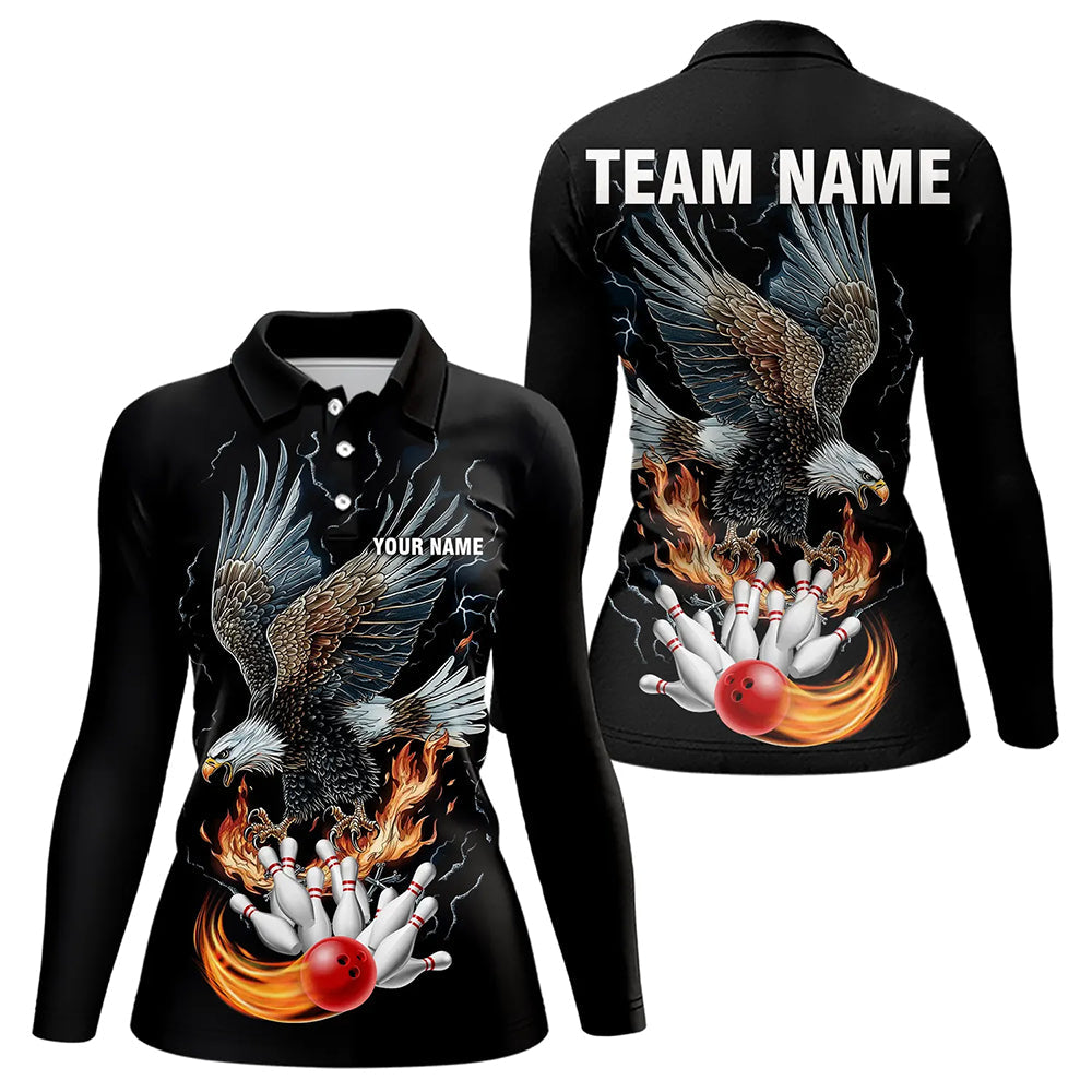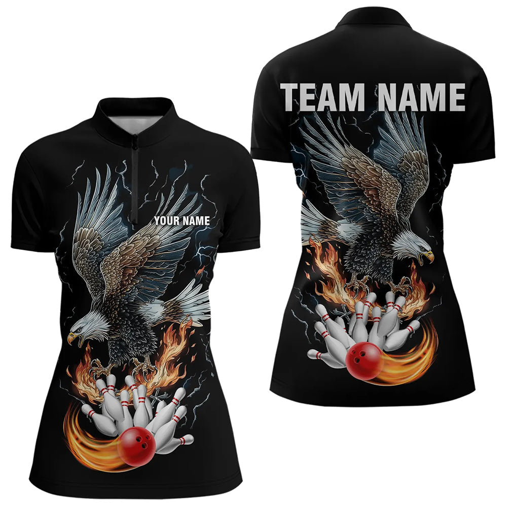 Black Women Bowling Polo, 1/4 Zip Shirt Custom Flame Eagle Lightning bowling outfit gifts for bowlers NQS9707