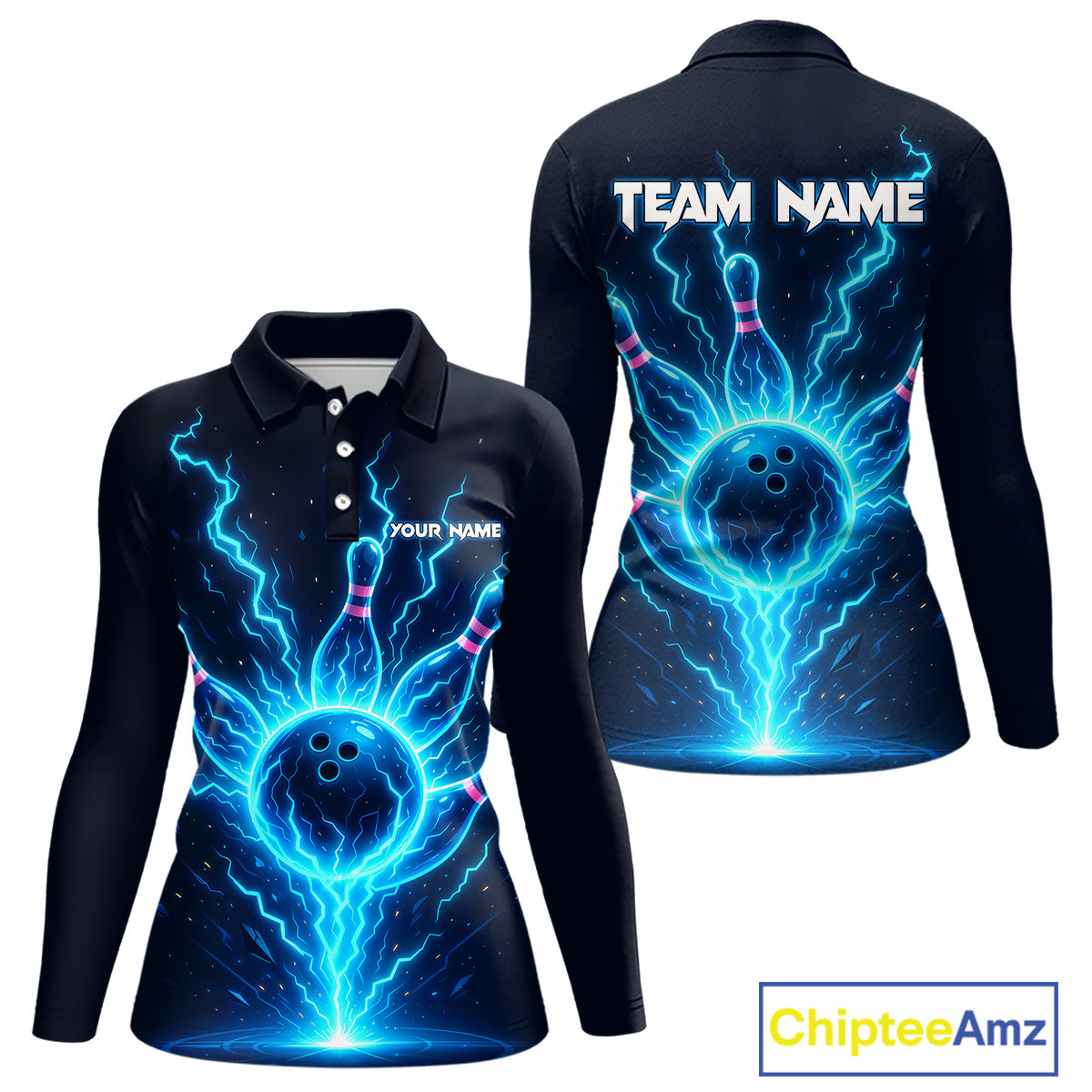 Blue Lightning Thunder Bowling Polo, Quarter Zip Shirts for Women Custom Team Bowling Shirts NQS10520