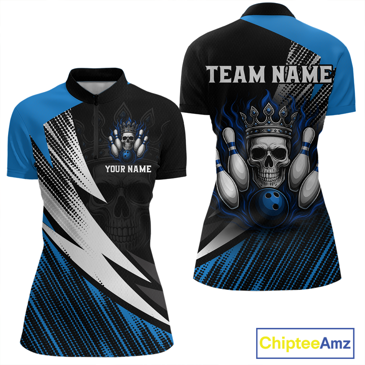 Blue Skull Crown Bowling Custom Women Bowling Shirt Polo & Quarter-Zip Bowling Team Jerseys HNT65