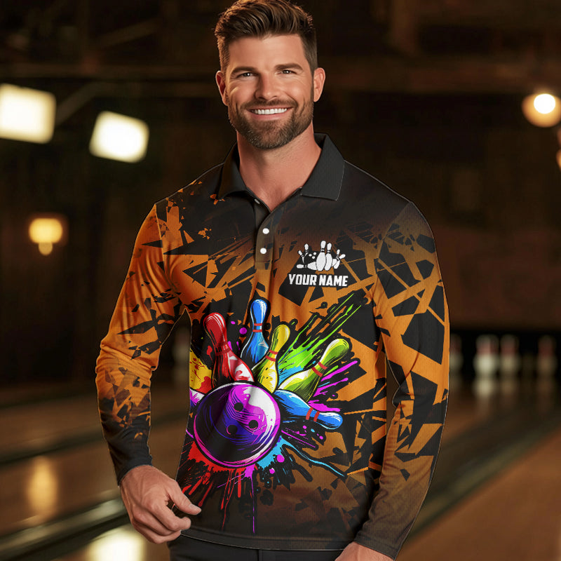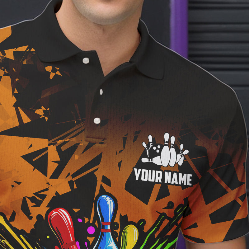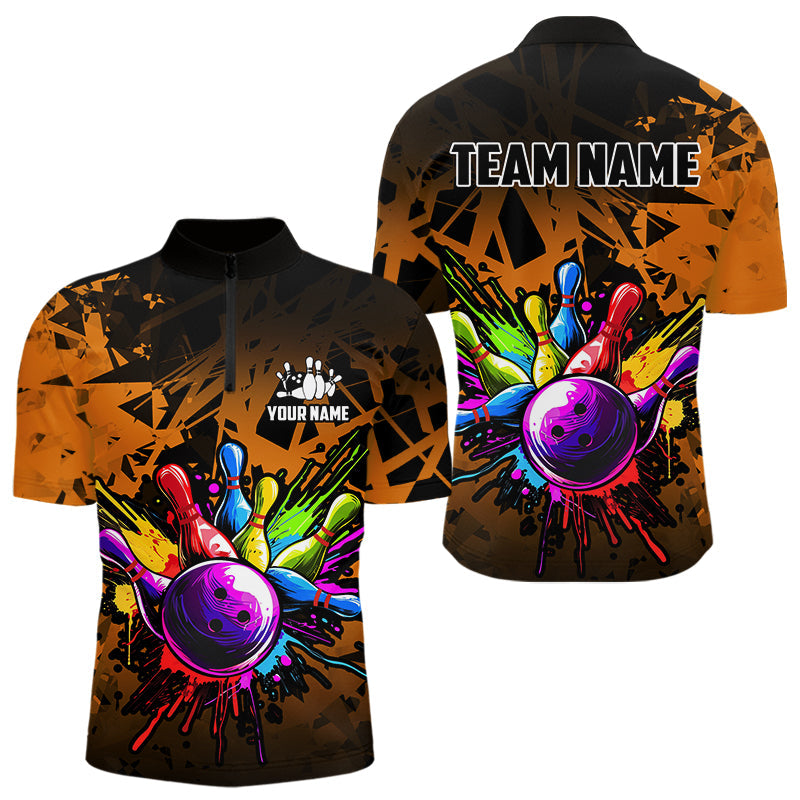 Colorful bowling jerseys Polo, 1/4 Zip Shirt for Men Custom Bowling Team shirts for bowler | Orange NQS9730