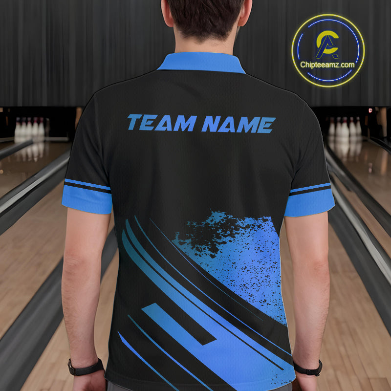Custom Black And Blue Bowling Team Polo, Quarter-Zip Shirts For Men, Personalized Bowling Jerseys NQS10539