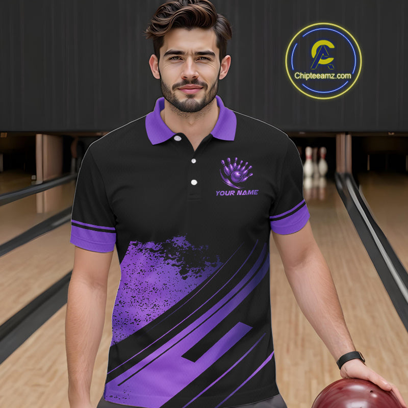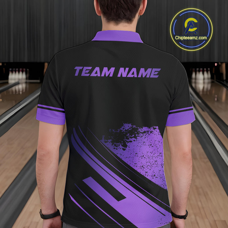 Custom Black And Purple Bowling Team Polo, Quarter-Zip Shirts For Men, Personalized Bowling Jerseys NQS10541