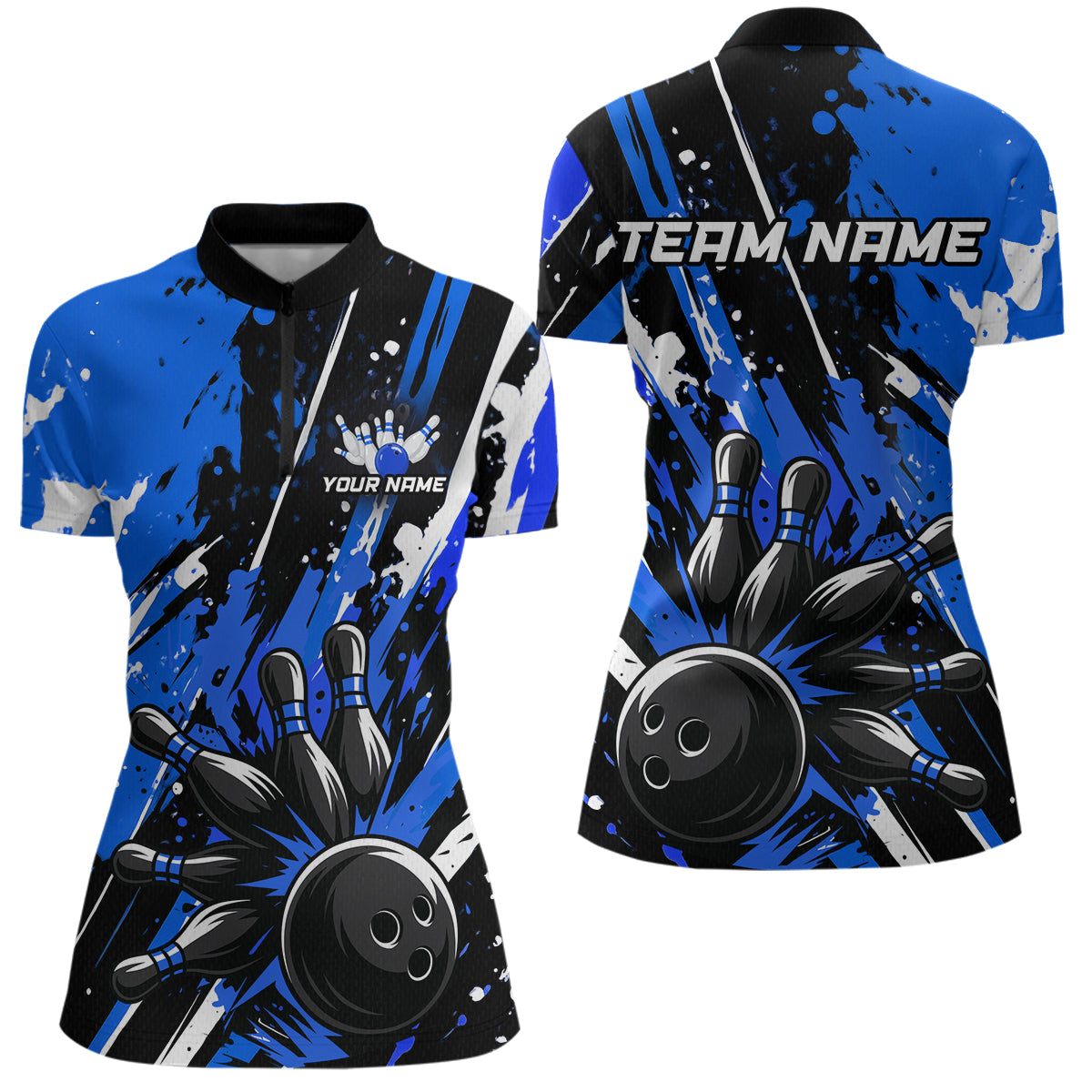 Custom Blue Bowling Jersey for Women Bowling Uniform Polo & 1/4 Zip Bowling Team Shirts HNT105
