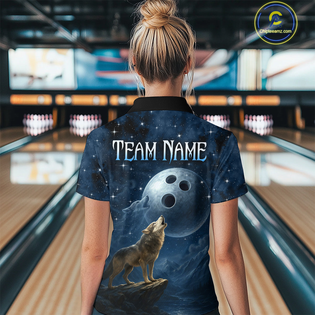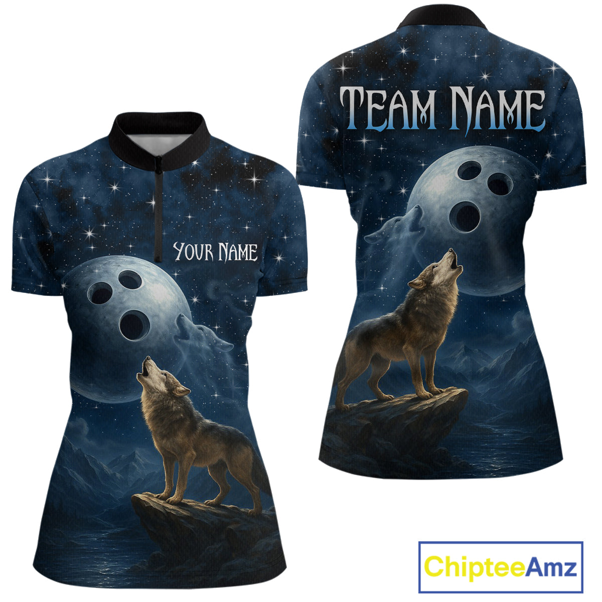 Custom Blue Bowling Shirt Wolf Bowling Team Jersey for Women Polo & 1/4 Zip Bowling Outfit QZT703