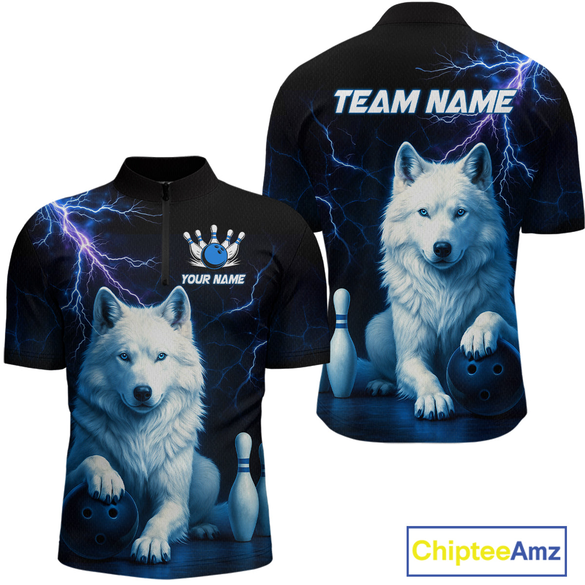 Custom Bowling Shirts for Men White Wolf Bowling Polo & Quarter-Zip Jersey Thunder Bowling Outfit QZT701
