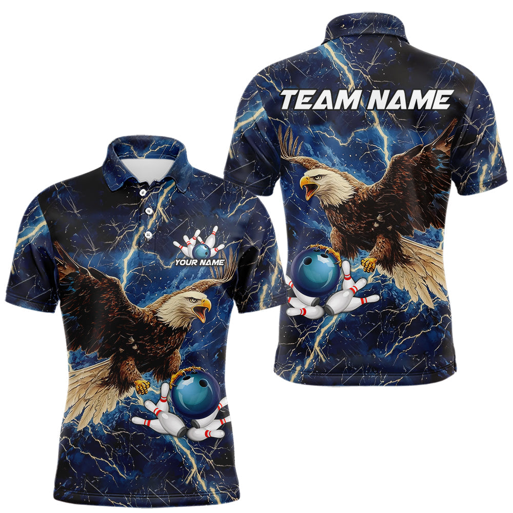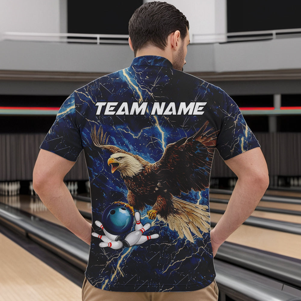 Custom Eagle Bowling Shirts For men Blue Lightning Thunder storm, Bowling Team Jerseys NQS9766