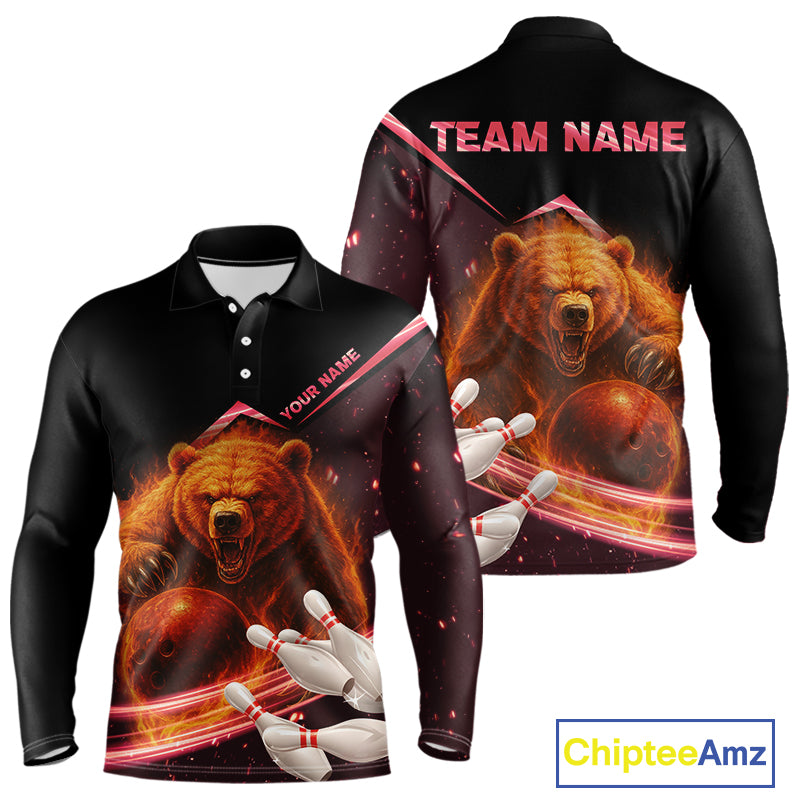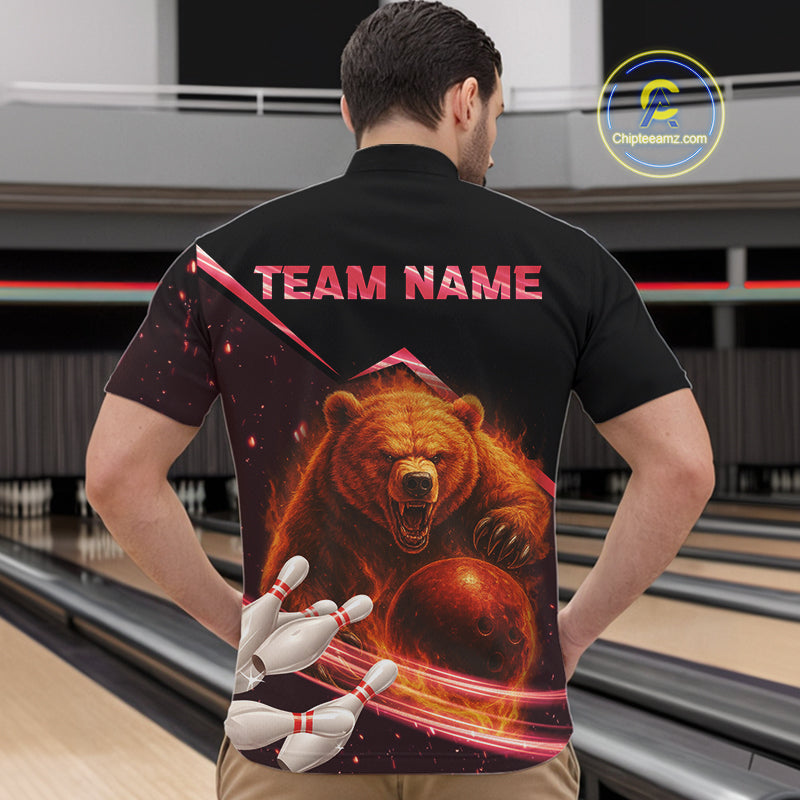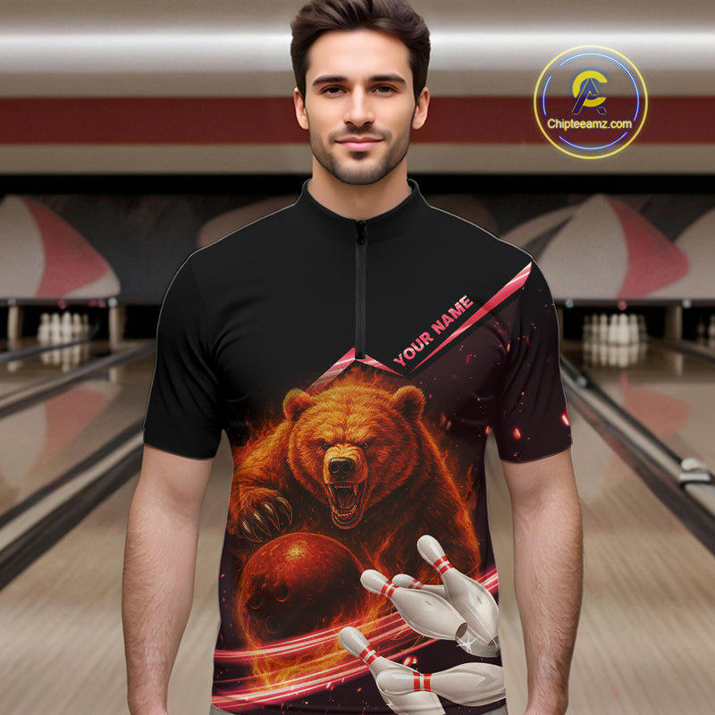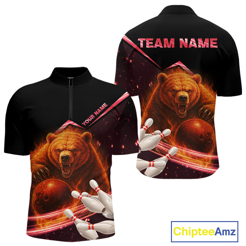 Custom Flame Bear Bowling Team Polo, Quarter zip Shirts For Men, Team Bowling Uniform NQS10321