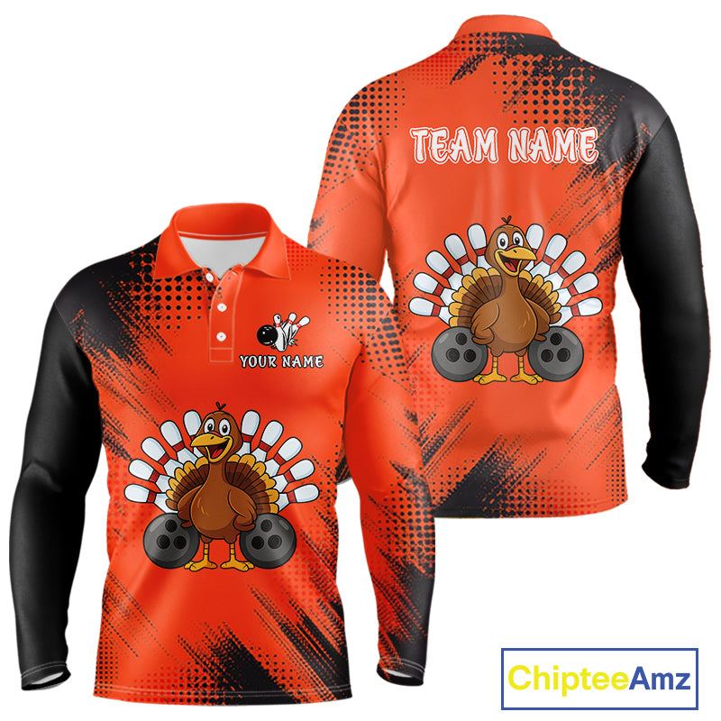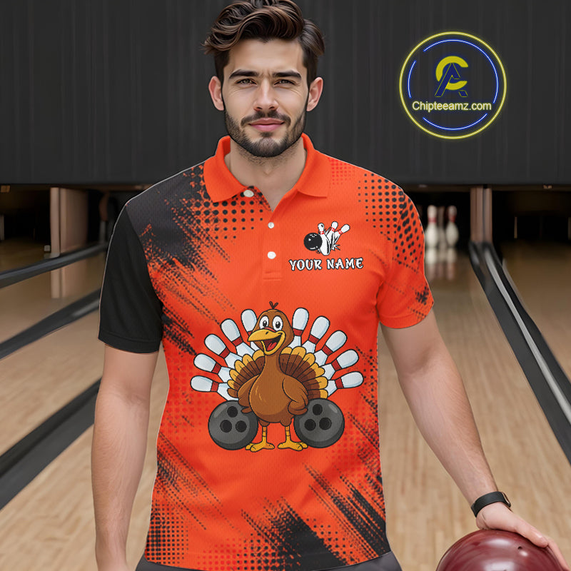Custom Orange Turkey Bowling Shirt For Men, Thanksgiving Bowling Team Jersey Bowler Outfit NQS10369