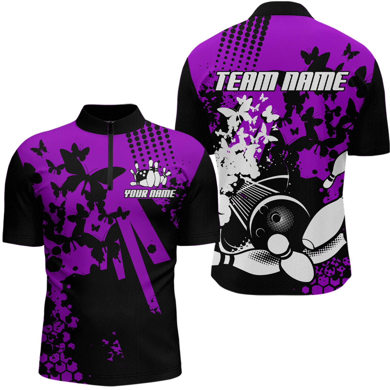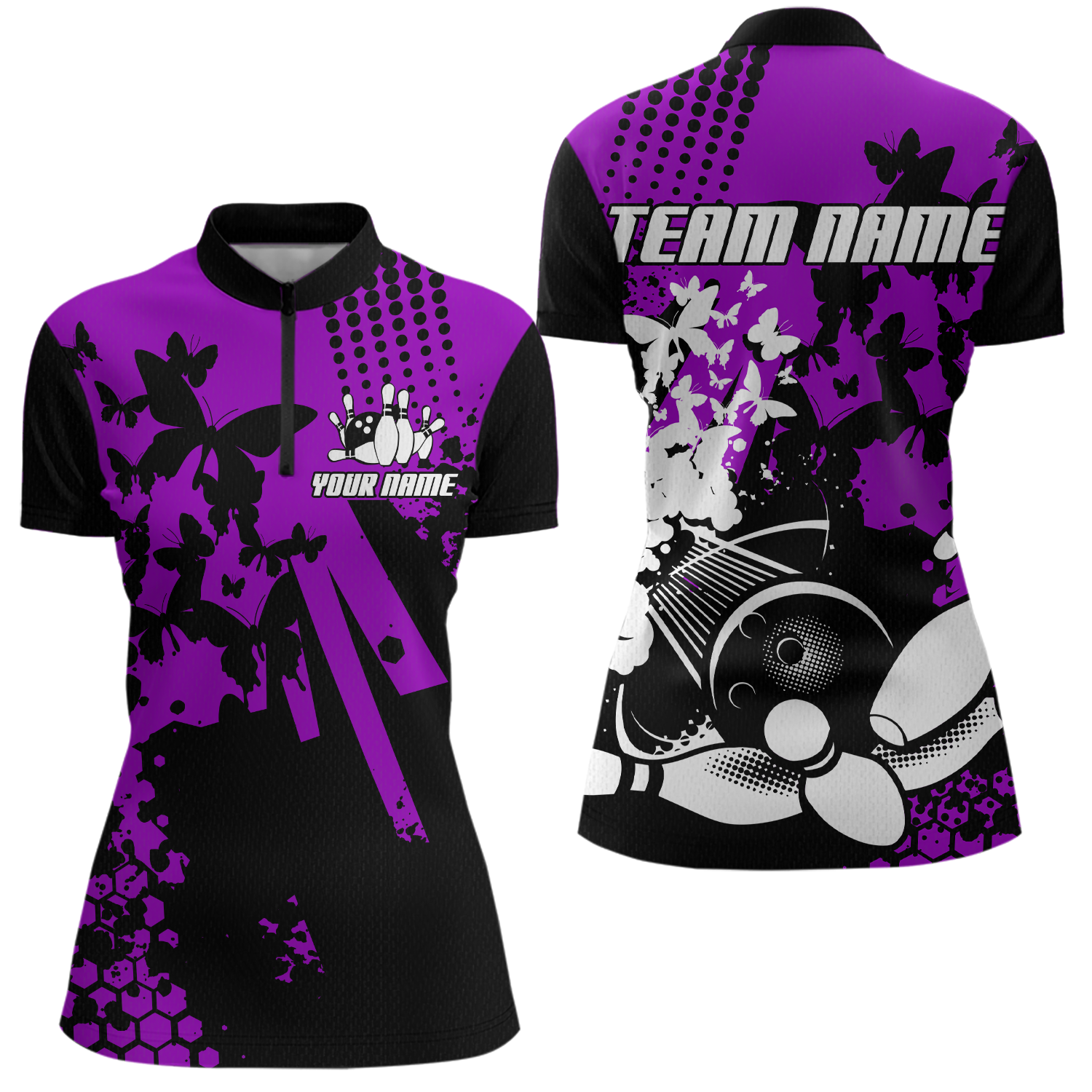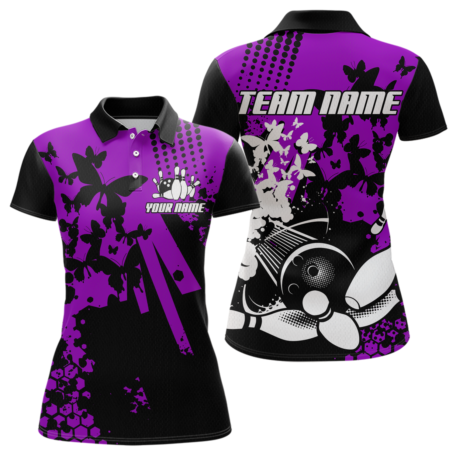 Custom Purple Butterflies Bowling Shirts for Men Women Bowling Jersey Team Name MBL79