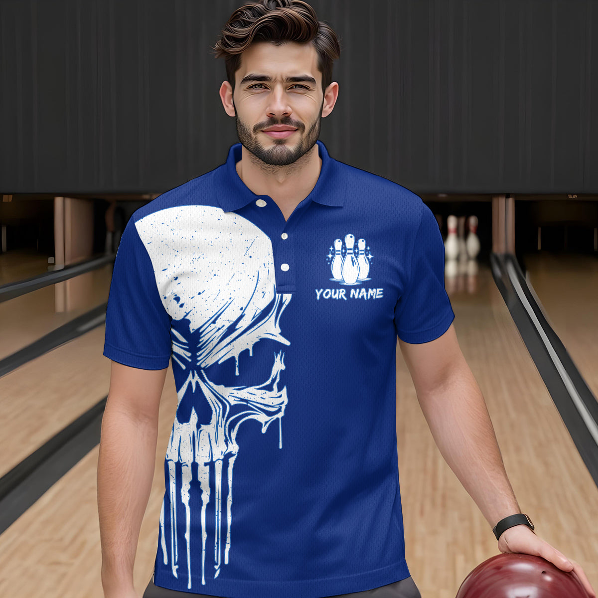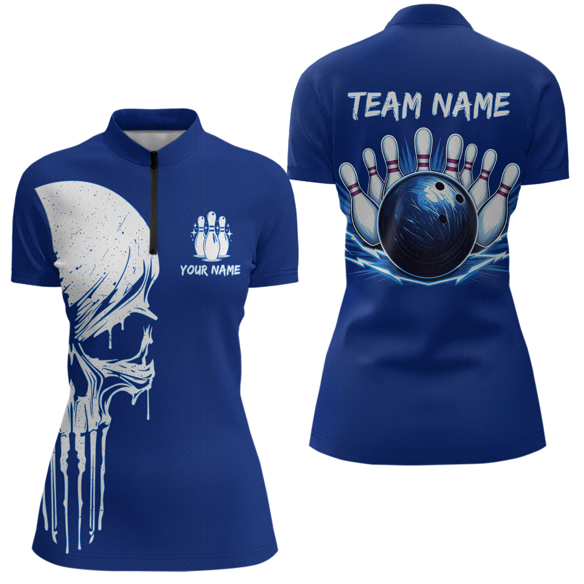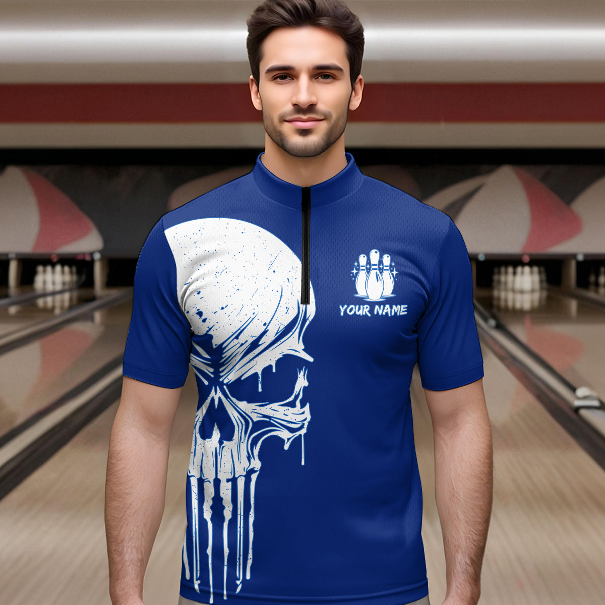 Custom Skull Bowling Shirt Blue Bowling Jersey for Men Women Team Polo&1/4 Zip MBL58