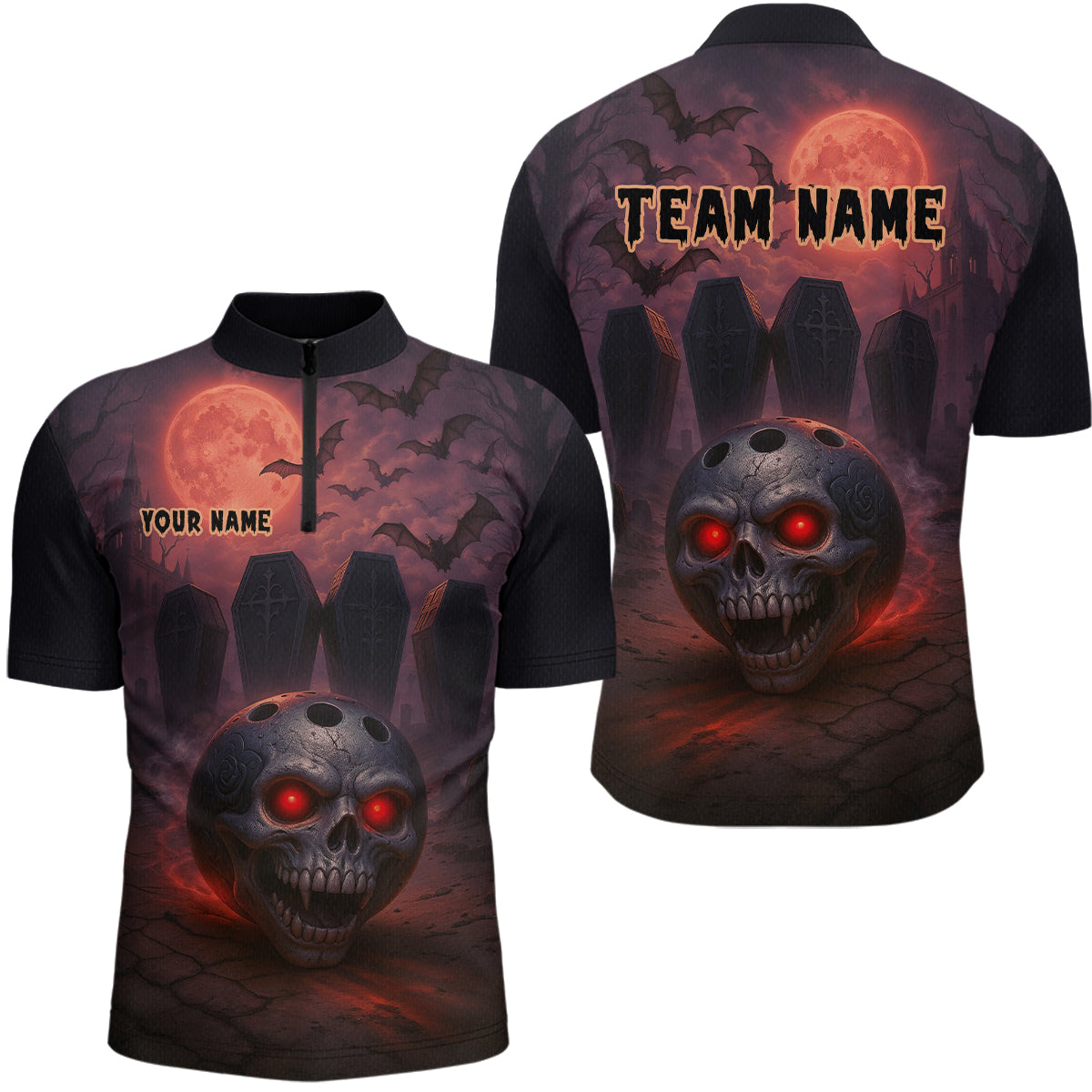 Custom Skull Bowling Team Shirt Vampire Bowling Jersey for Men Bowling Outfit Polo & 1/4 Zip QZT751
