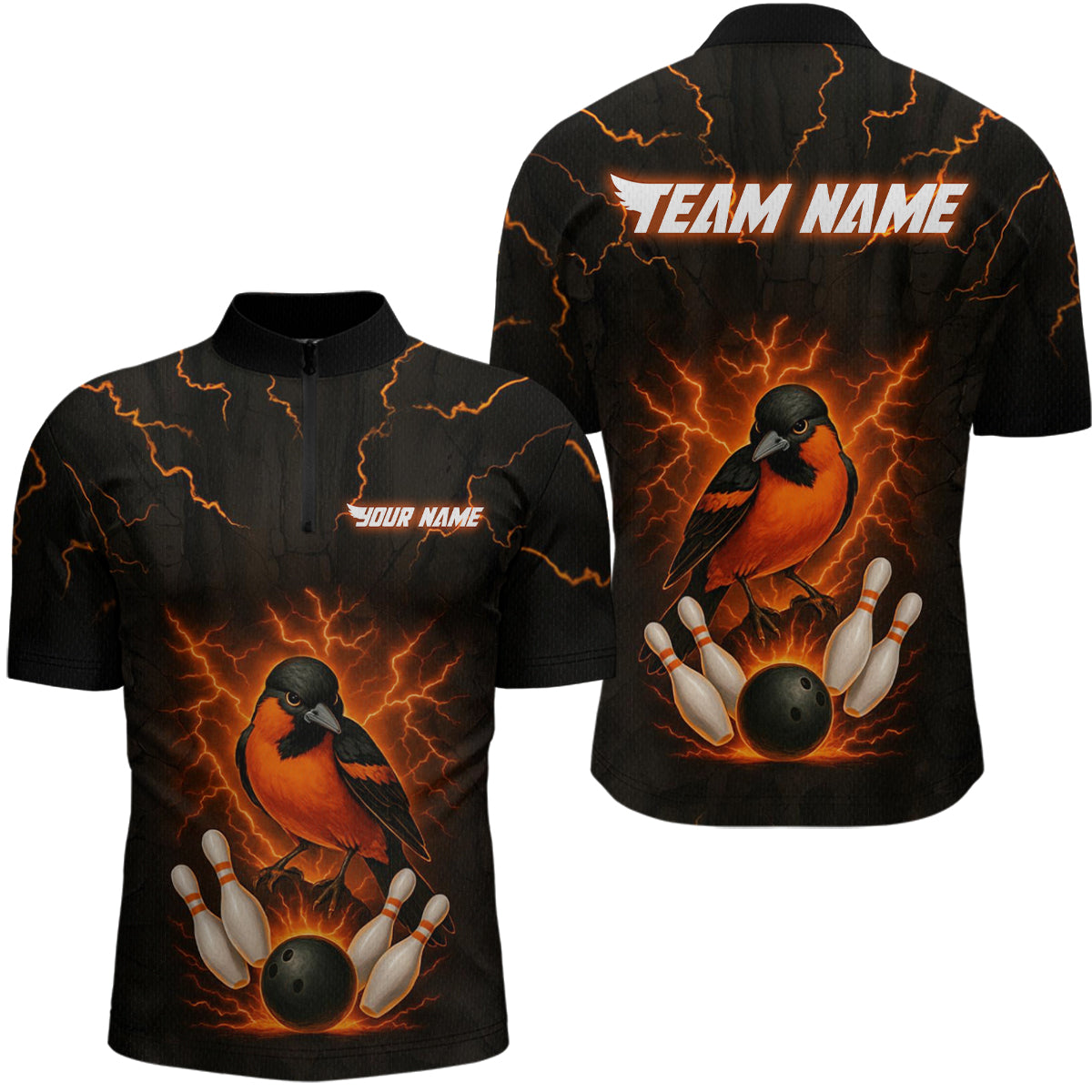 Custom Thunder Lightning Orioles Bowling Shirt Polo & Quarter-Zip Bowling Team League Bowling Jersey QZT716