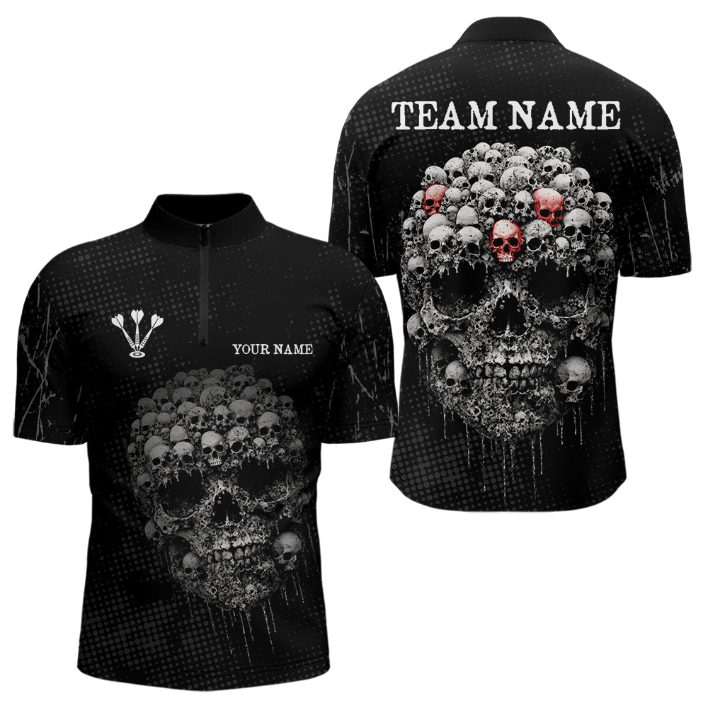 Personalized Skull Black Custom Darts Shirt Polo & 1/4 Zip For Men, Dart Team Shirts NYN0002