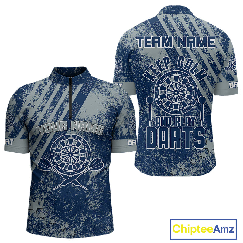 Keep Clam And Plays Dart Custom Blue Grunge Dart Shirts For Men, Dart Team Jerseys NYN0065