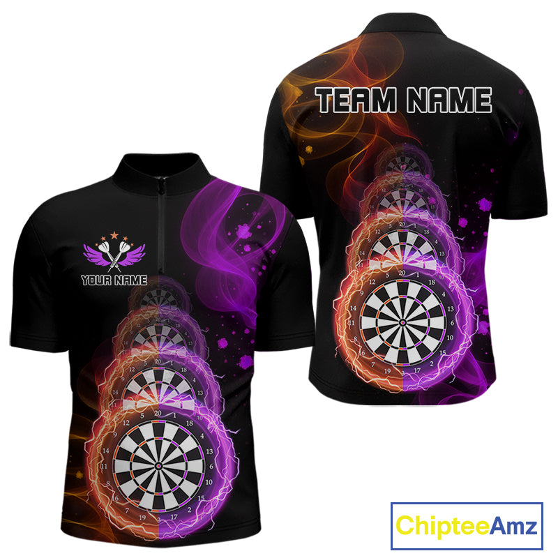 Custom Orange & Purple Lightning Dartboards Dart Shirt For Men, Colorful Dart Jersey NYN1043