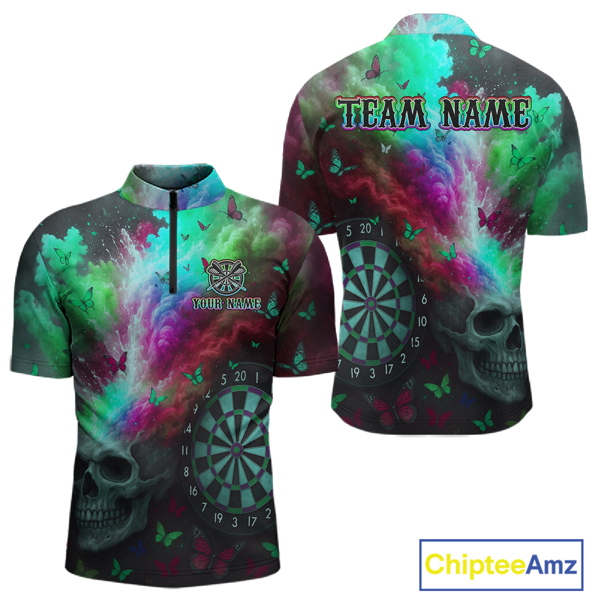 Custom Colorful Smoke Skull Dartboard Men Dart Shirt Outfits Butterflies Dart Jerseys NYN1064