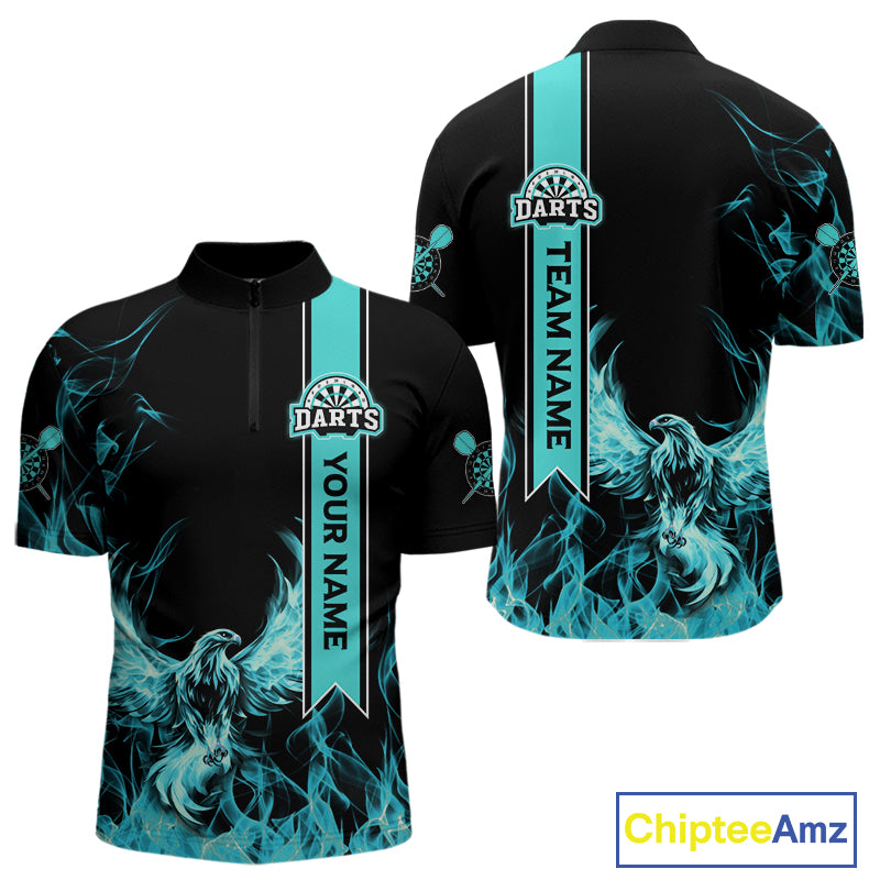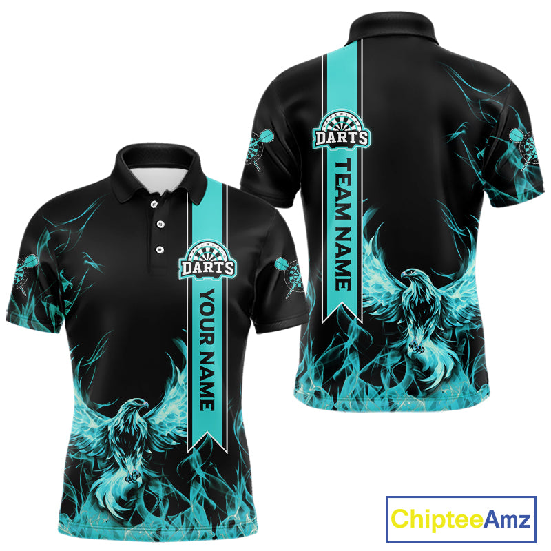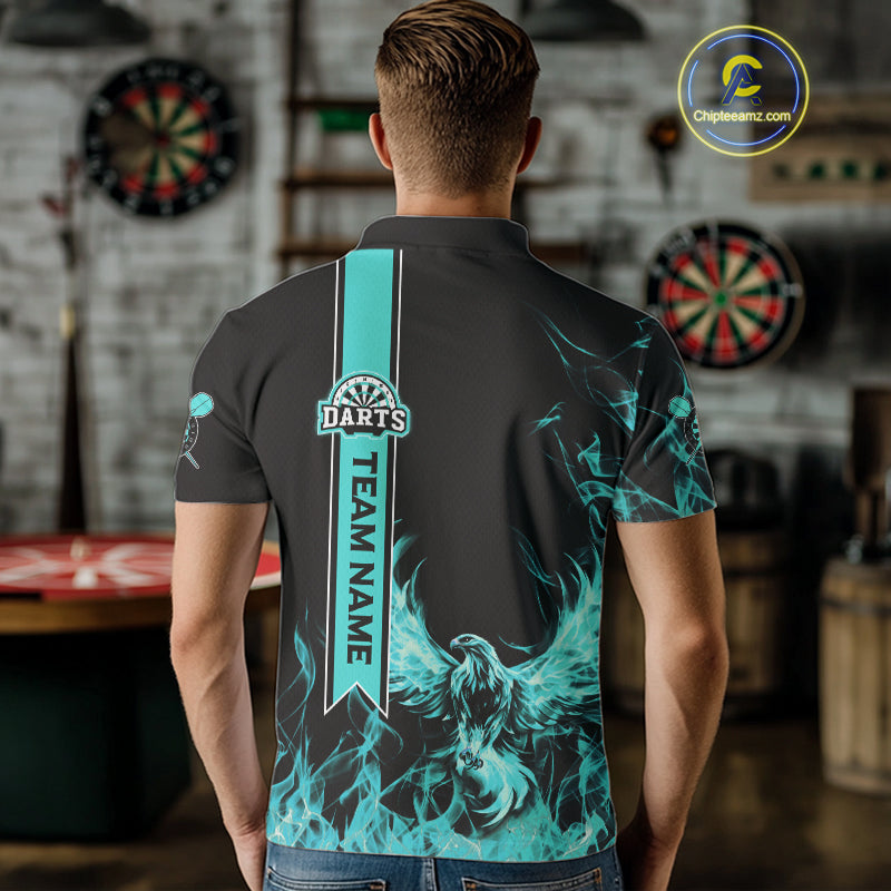 Custom Turquoise Flames Eagle Dart Shirts For Men Eagle Dart Team Jerseys Personalized NYN1111
