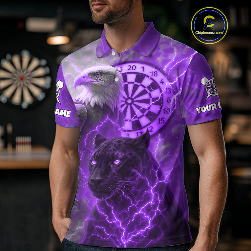 Custom Darts Shirt For Men Lightning Eagle Panther Dartboard Dart Team Jerseys | Purple NYN1152