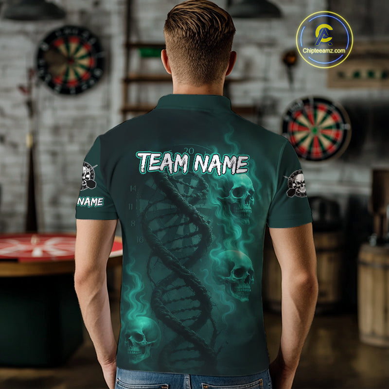 Darts - It's Is In My DNA Personalized Turquoise Dart Shirt For Men Skull Dartboard Dart Team Shirts NYN1124