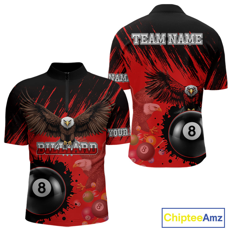 Personalized Eagle 8 Ball Pool Billiard Shirt For Men, Billiard Jerseys Team Polo & 1/4 Zip|Red TDM3826