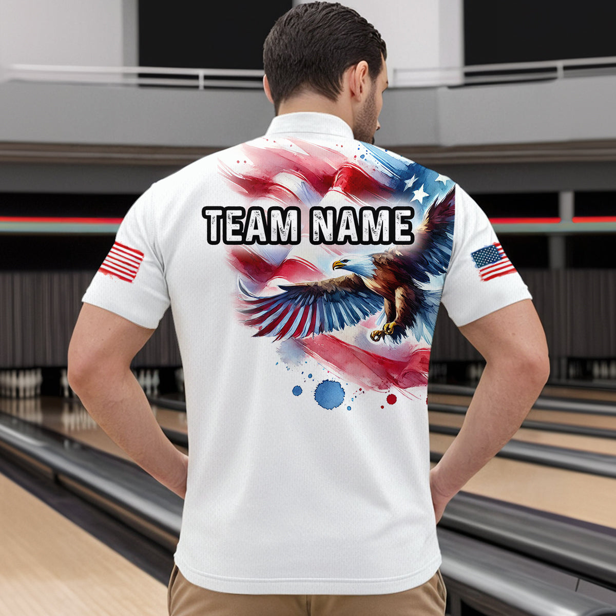 Patriotic Eagle Bowling Shirts American Flag Bowling Polo & 1/4 Shirt for Men Women MBL12