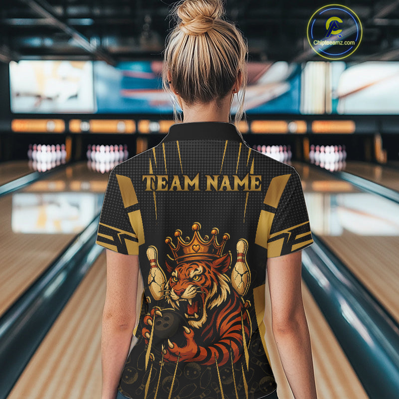 Personalized Black and Gold Tiger Bowling Shirt For Women Custom Team bowling jersey, gift for Bowler NQS10474