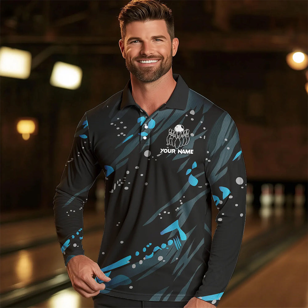 Personalized Blue Camo Bowling Team Shirts For Men Custom Bowling Team jerseys, Gifts For Bowler NQS9718